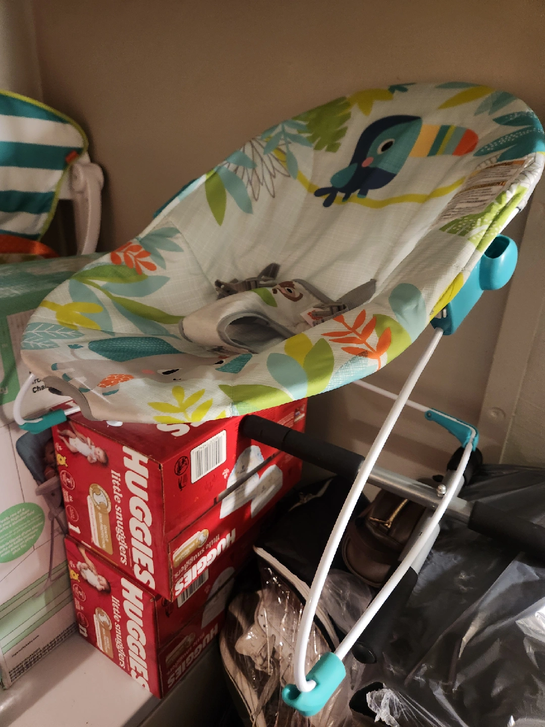 Selling a baby bouncer in great condition! It's got a cute design with birds and leaves. Perfect for keeping your little one entertained and comfortable