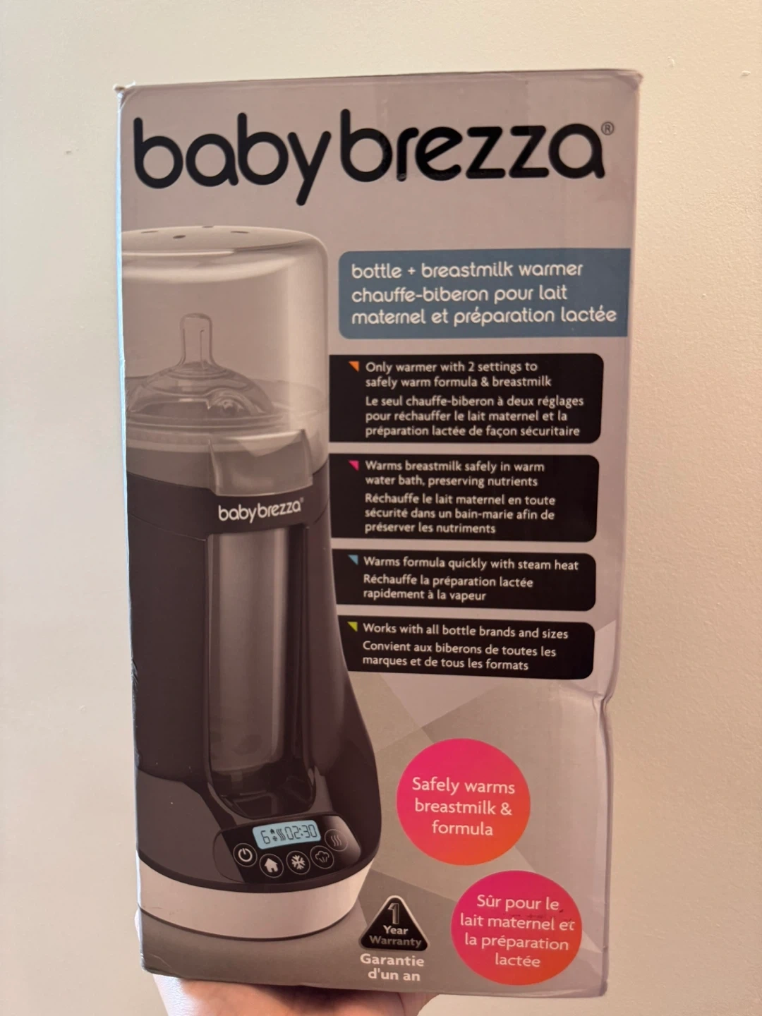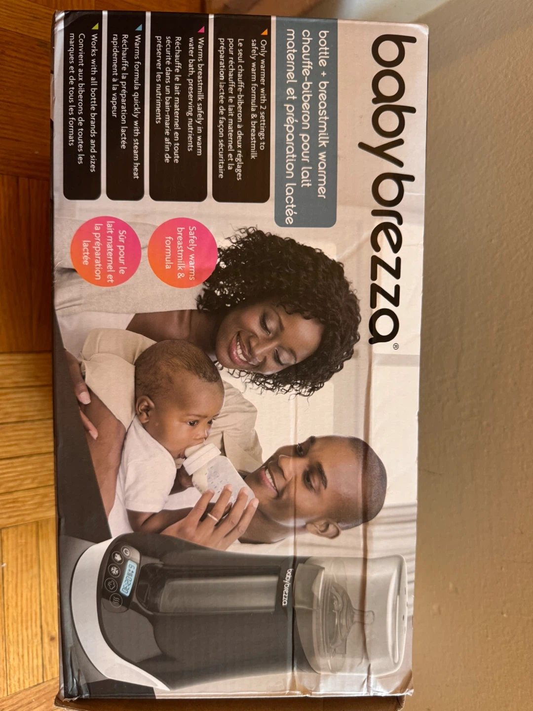 Keep your little one's milk warm with this Baby Brezza bottle and breastmilk warmer! It safely warms breastmilk and formula in a warm water bath, preserving nutrients. It also warms formula quickly with steam heat. Works with all bottle brands and sizes. Comes with the original box and instructions