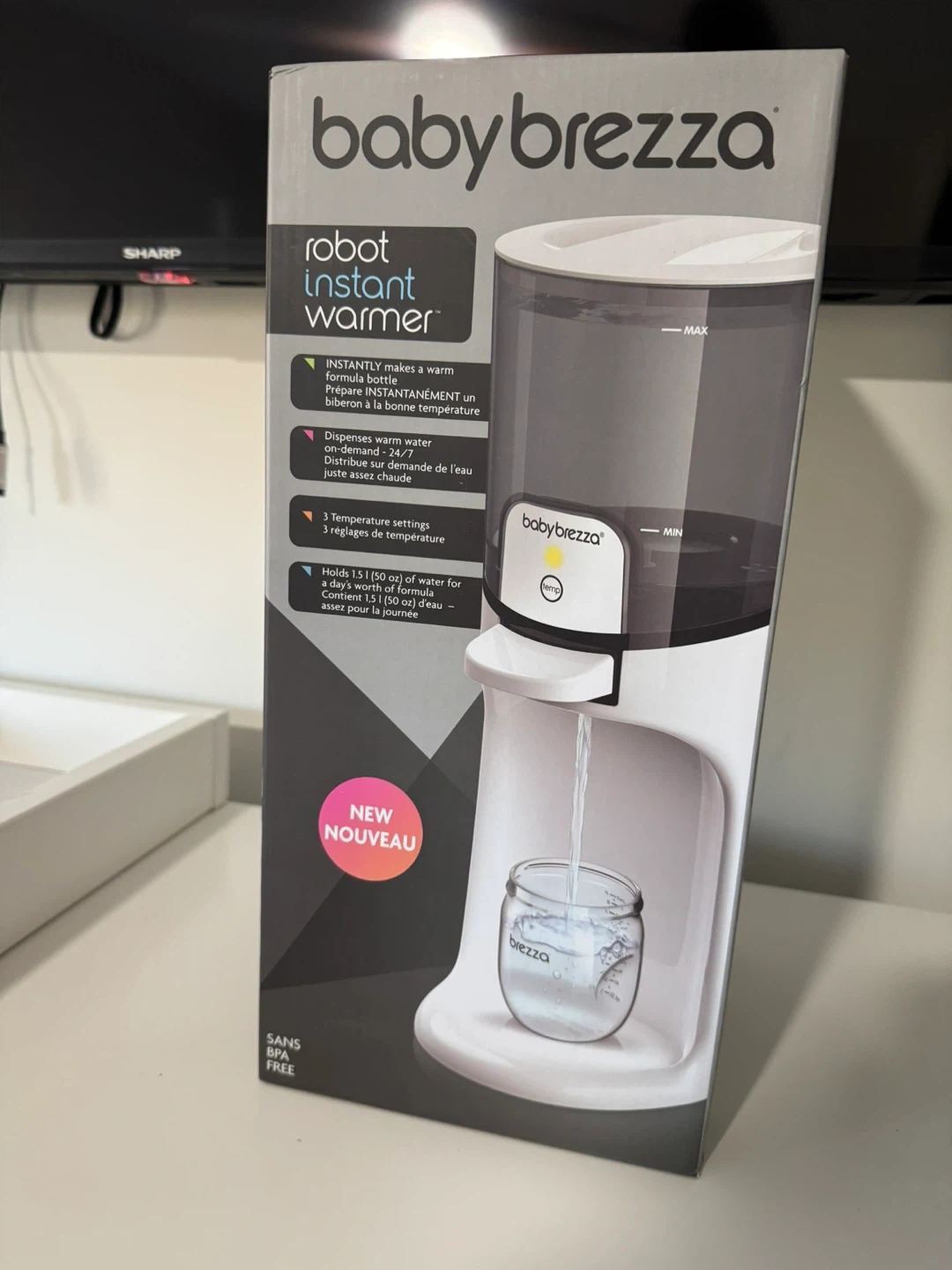 Selling a brand new Baby Brezza Robot Instant Warmer! This handy device instantly makes a warm formula bottle, dispensing warm water on-demand. It features 3 temperature settings and holds 1.5 l (50 oz) of water for a day's worth of formula. The box is included!