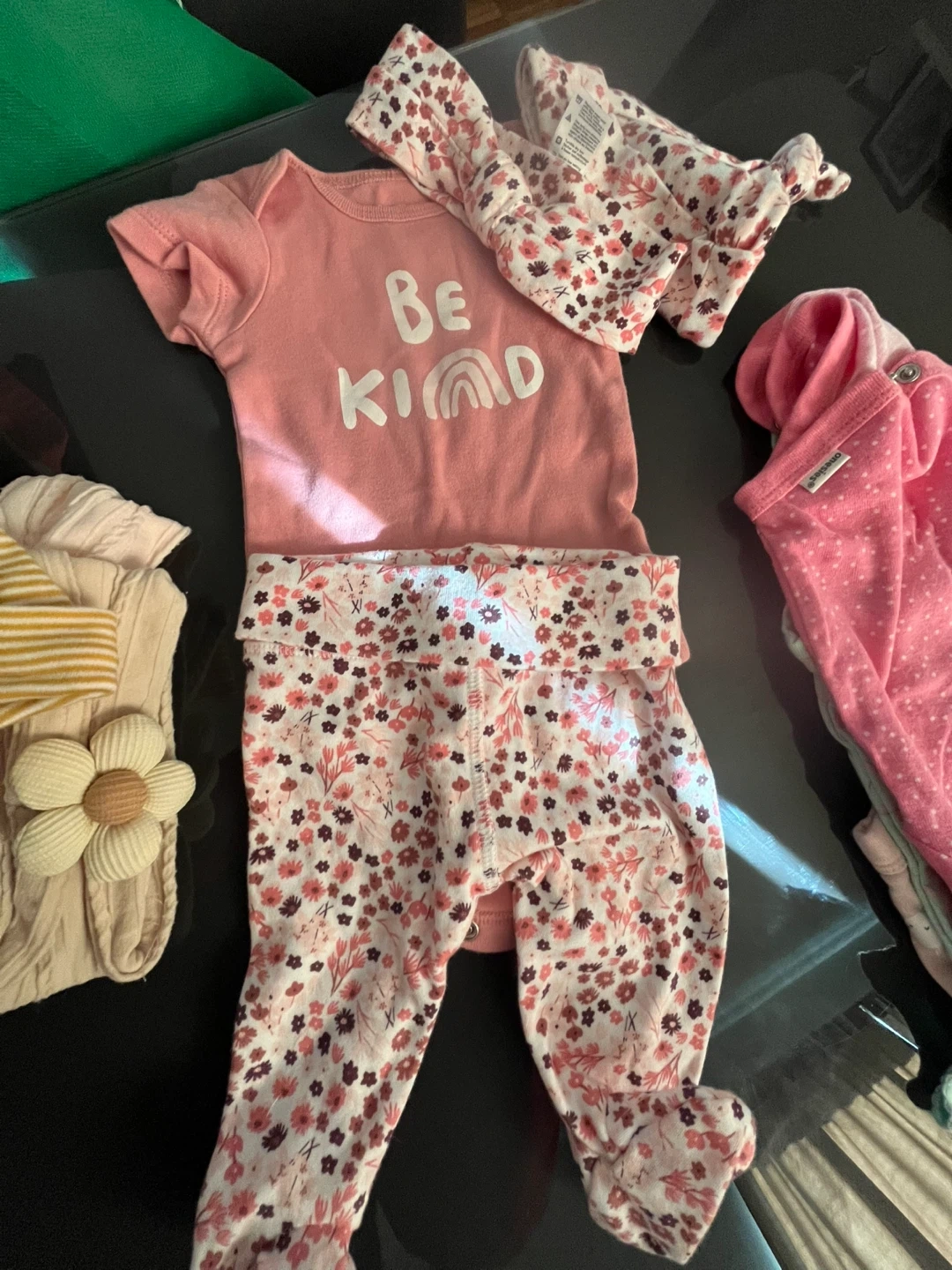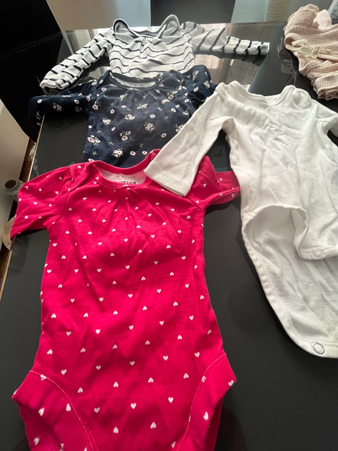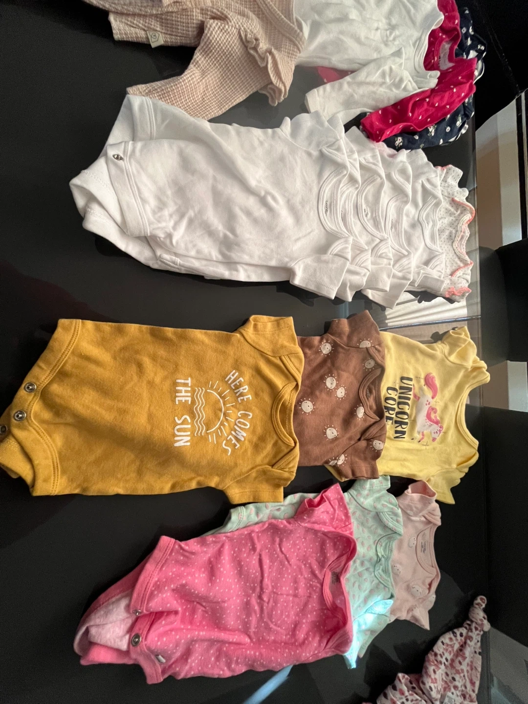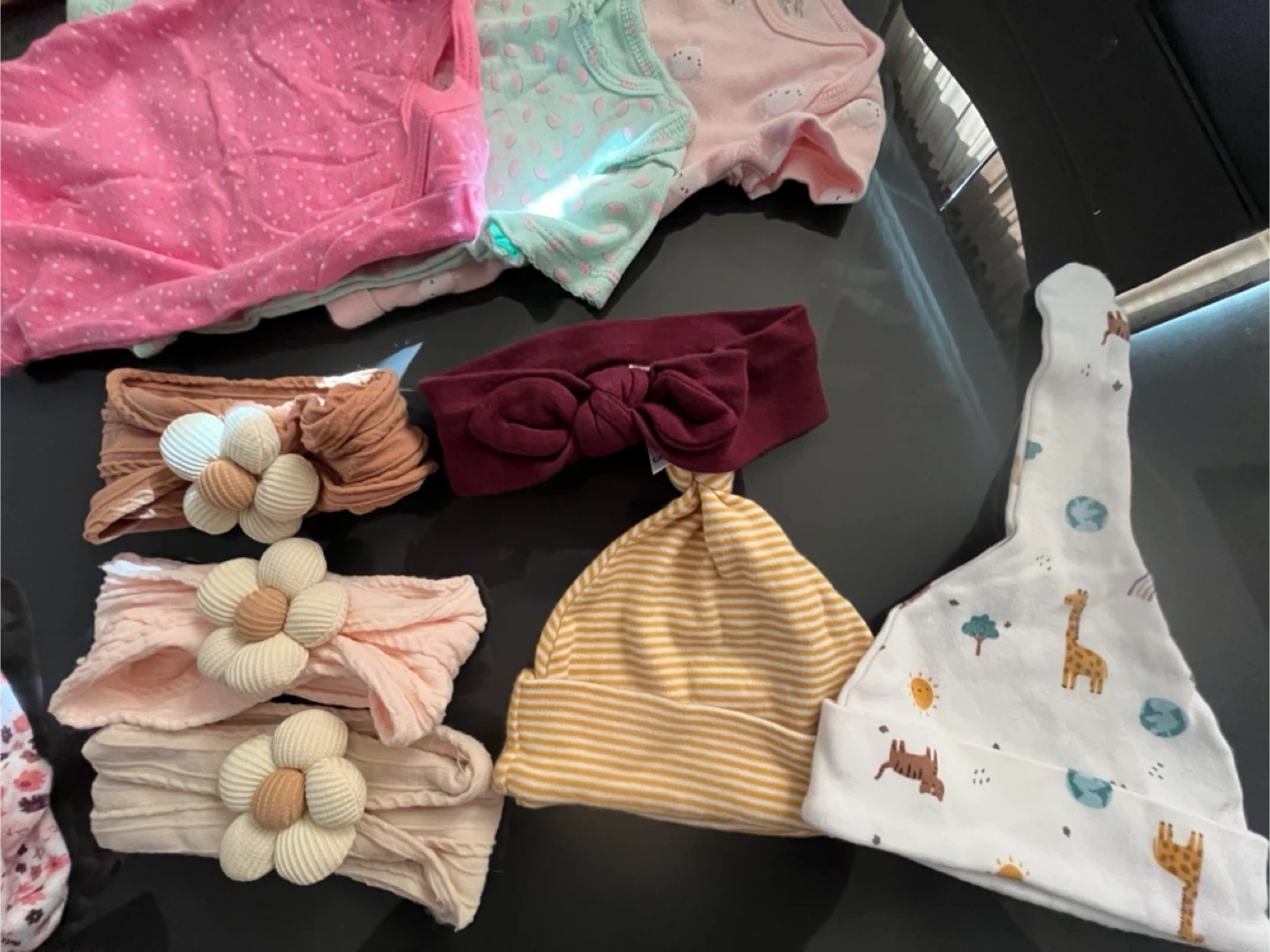 A sweet collection of baby clothes in size 0-3 months! This bundle includes a variety of bodysuits, tops, pants, and accessories like headbands and hats. Perfect for your little one or as a thoughtful gift for new parents Most of it never worn Selling as a bundle Other diapers and pants included couldn’t add picture message for more pictures Pick up only Smoke free home Have cat but clothing kept away in a sealed bag