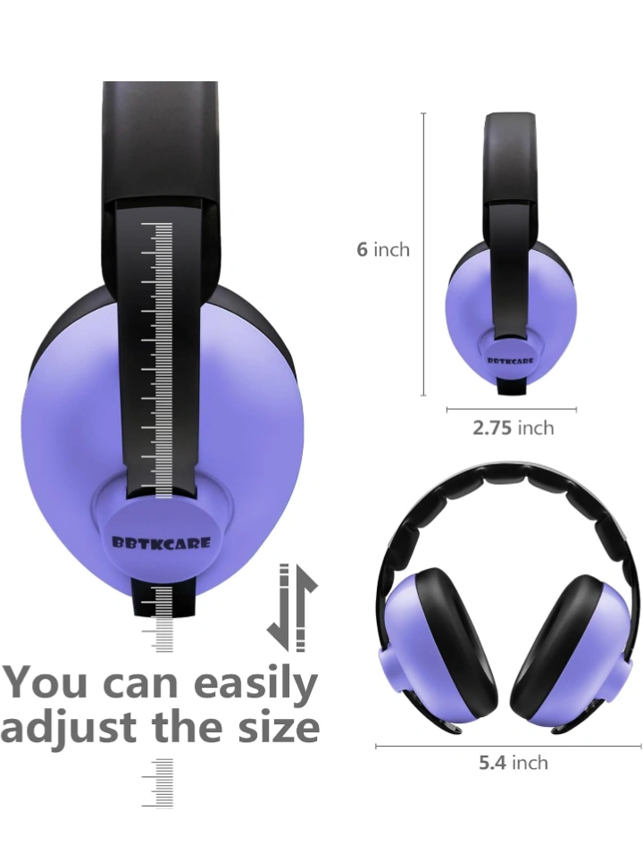 Adjustable infant earmuffs. Lightweight and comfortable design. Suitable for babies and toddlers. Great for protecting little ears from loud noises.