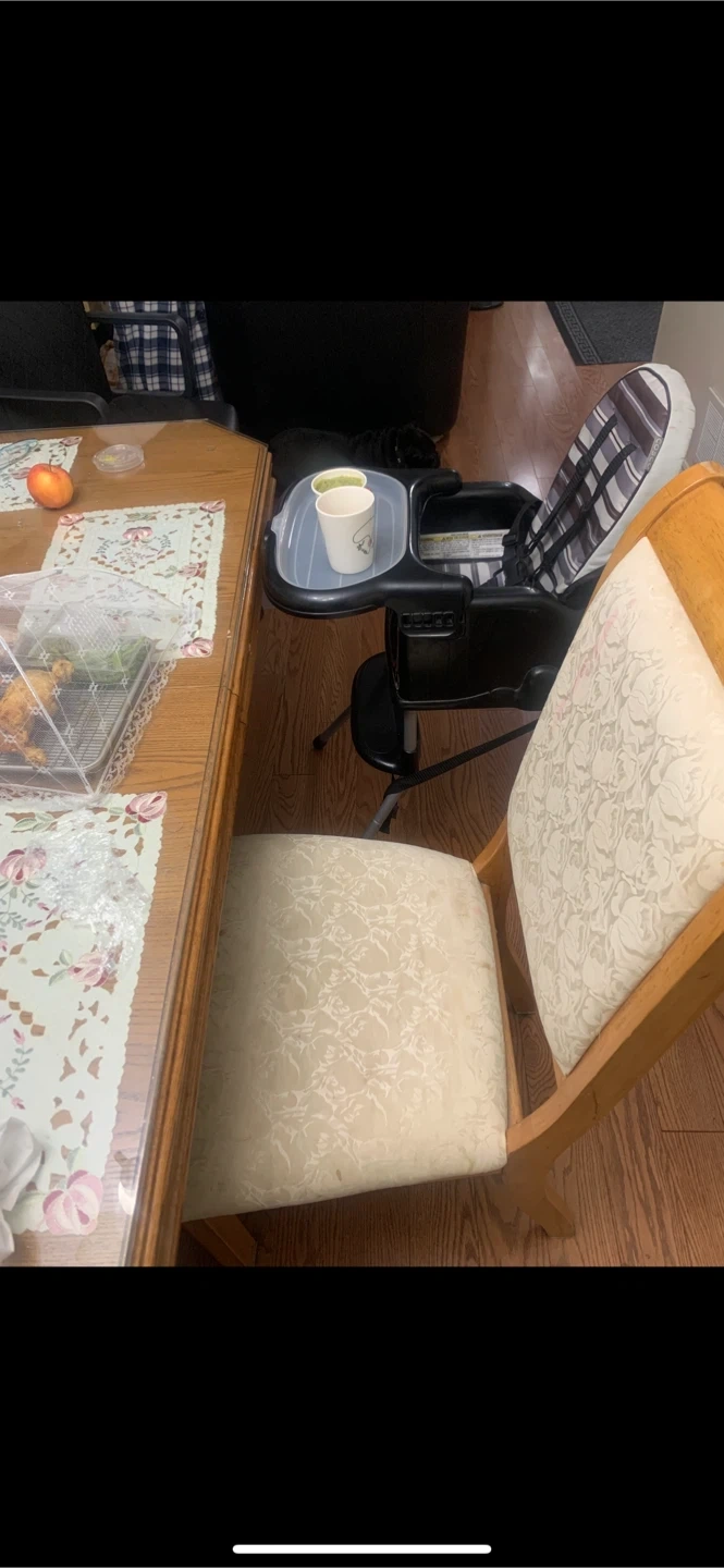 Baby Eating Feeding High Chair Kids grow up fast and the High Chair grows with them. This foldable high chair easily transitions from first foods chair to a traditional high chair. The Feed Easy food tray makes less mess and intimate parent-baby bonding. Kitchen cleanup is a breeze with wipeable materials and a dishwasher-safe main tray and a mini Feed Easy tray. Easily remove the machine-washable seat pad and machine-washable harness and straps. Keep your little one comfy and secure with the 5-point safety harness. Give baby a seat at the table and make them like family! High chair lets your baby eat with you on the table and teaches them to eat on the table with you, watching you eat and learning to eat properly. Being on eye level contact while you both eat creates a closer bond and relationship with your baby and teaches them how to eat properly. * Easy clean design * Includes BPA-free Feed Easy food tray for less mess feeding * Easy to remove dishwasher safe main tray and mini tray * Machine washable fabric seat pad, harness, and straps * Keeps little ones secure with 5-point safety harness. * Strong and sturdy build Can be picked up or delivered Cheap - message me