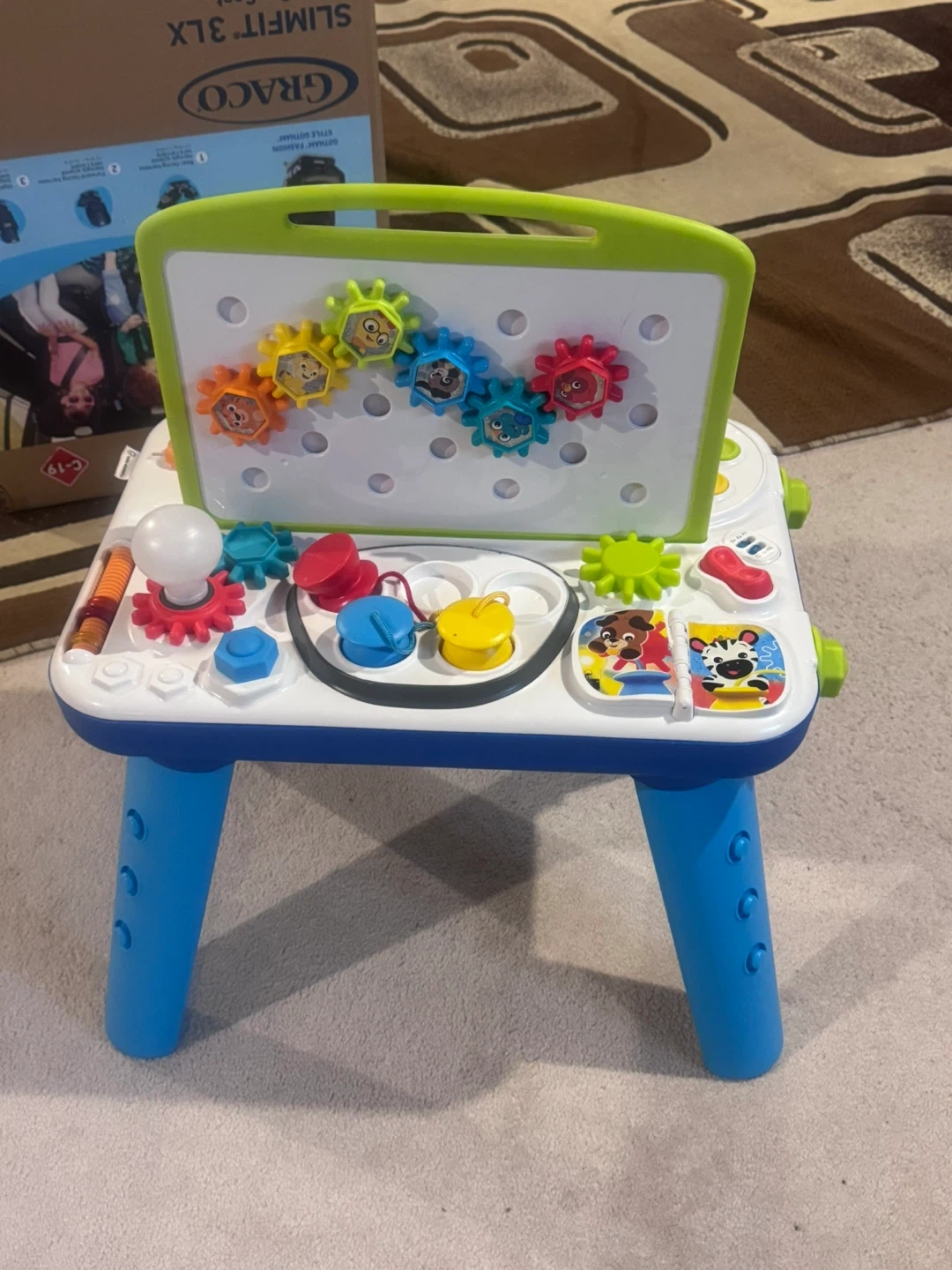 Selling a Baby Einstein Curiosity Table Activity Station! It's in great condition and ready for a new home. This activity table is perfect for keeping your little one entertained and engaged with its colourful gears and interactive features. Originally bought for $129.99!