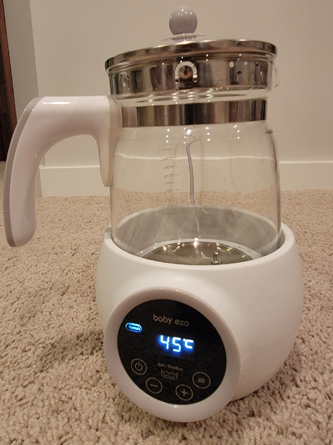 Selling a Baby Exo formula kettle. it keeps in the desired temperature to save time for cool down. It's in great condition and ready to help with baby's feeding time! It boils and sterilizes water for formula.