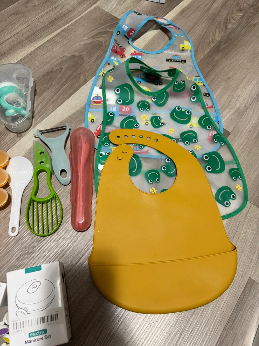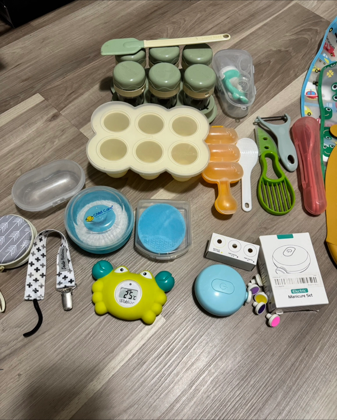 Selling a bundle of baby food preparation and feeding items. Includes food storage containers, bibs, utensils, and other helpful items for starting solids. Great for parents looking to make their own baby food!