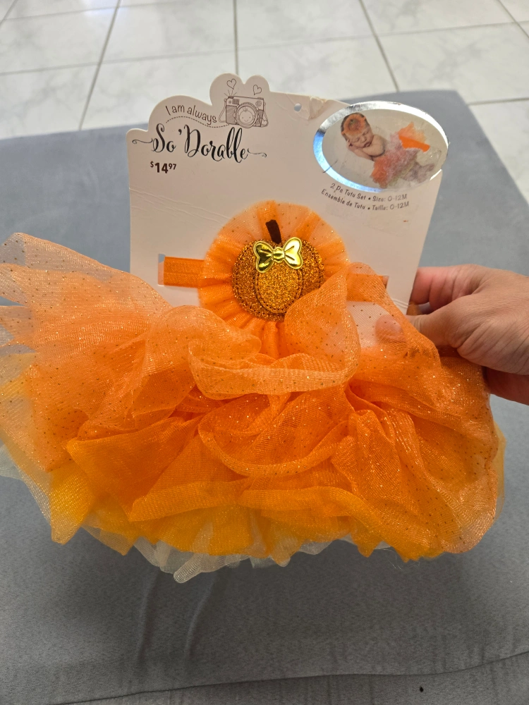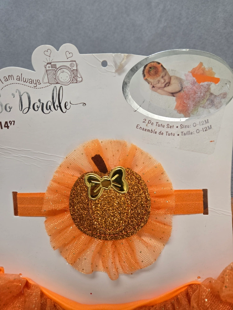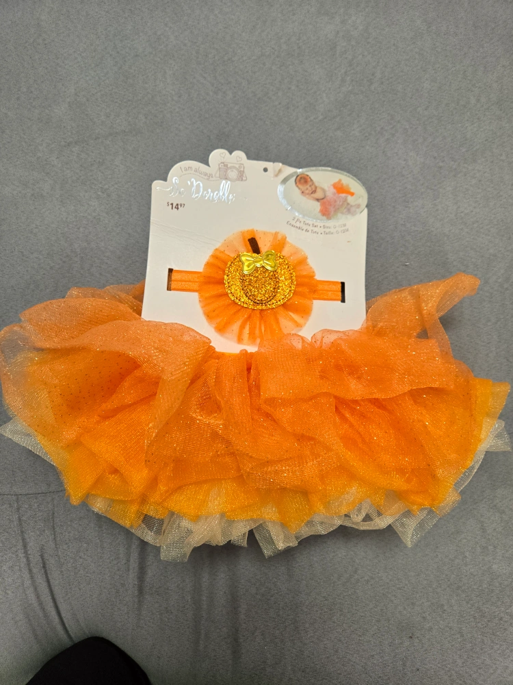 Baby infant orange skirt w headband pumpkin halloween Price is firm Pick up near 22nd skytrain new west