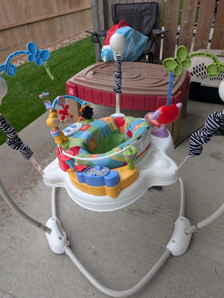 Selling a baby jumper in good used condition! It's colourful and has lots of fun toys attached to keep your little one entertained. Perfect for developing their leg muscles and coordination