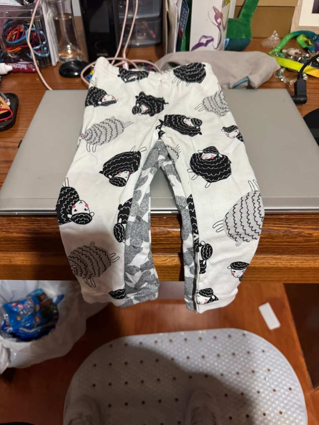 Cute baby pants with a fun sheep print! These are perfect for keeping your little one comfy and stylish. They feature a playful black and white design that's sure to catch the eye. Great for everyday wear!