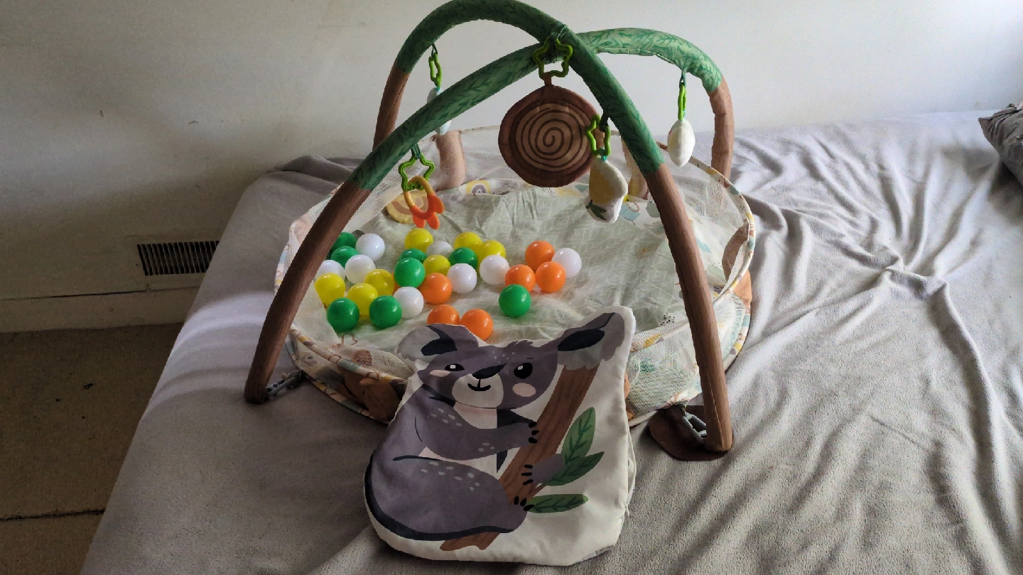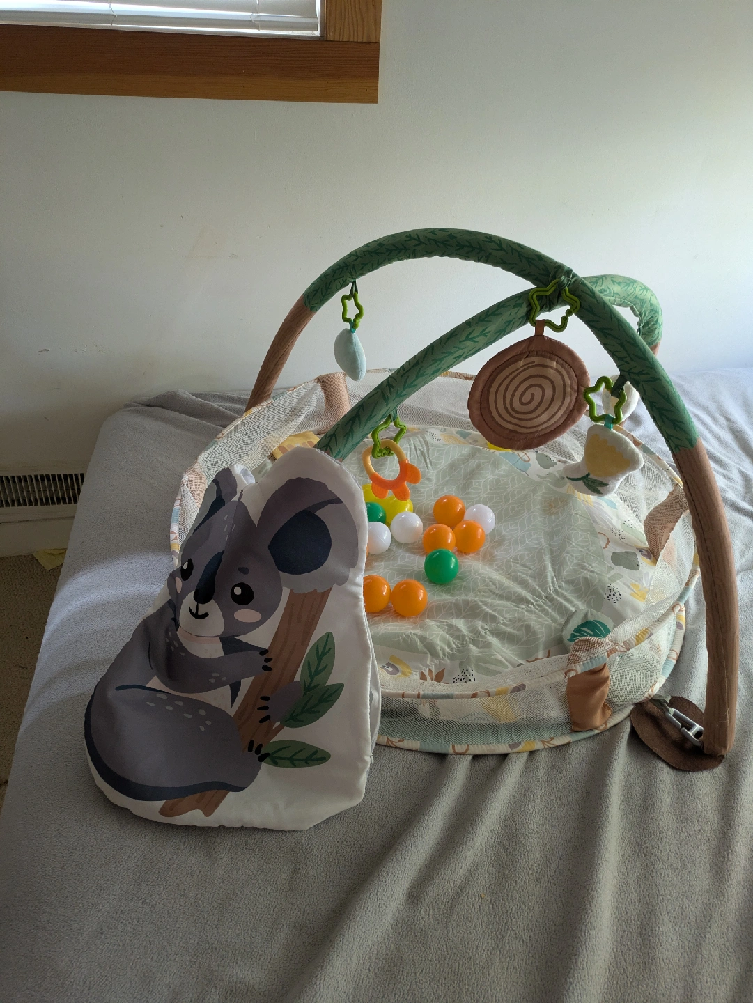 This baby play gym is perfect for tummy time and playtime! It comes with colourful balls for extra comfort and support. Your little one will love exploring the different textures and sounds.