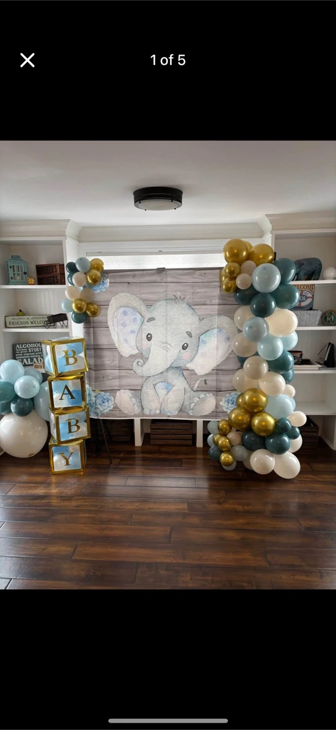 Elephant back drop Baby letter boxes Ready to pop stickers (great for popcorn) And picture frames with handmade signs Can be sold all together or separately