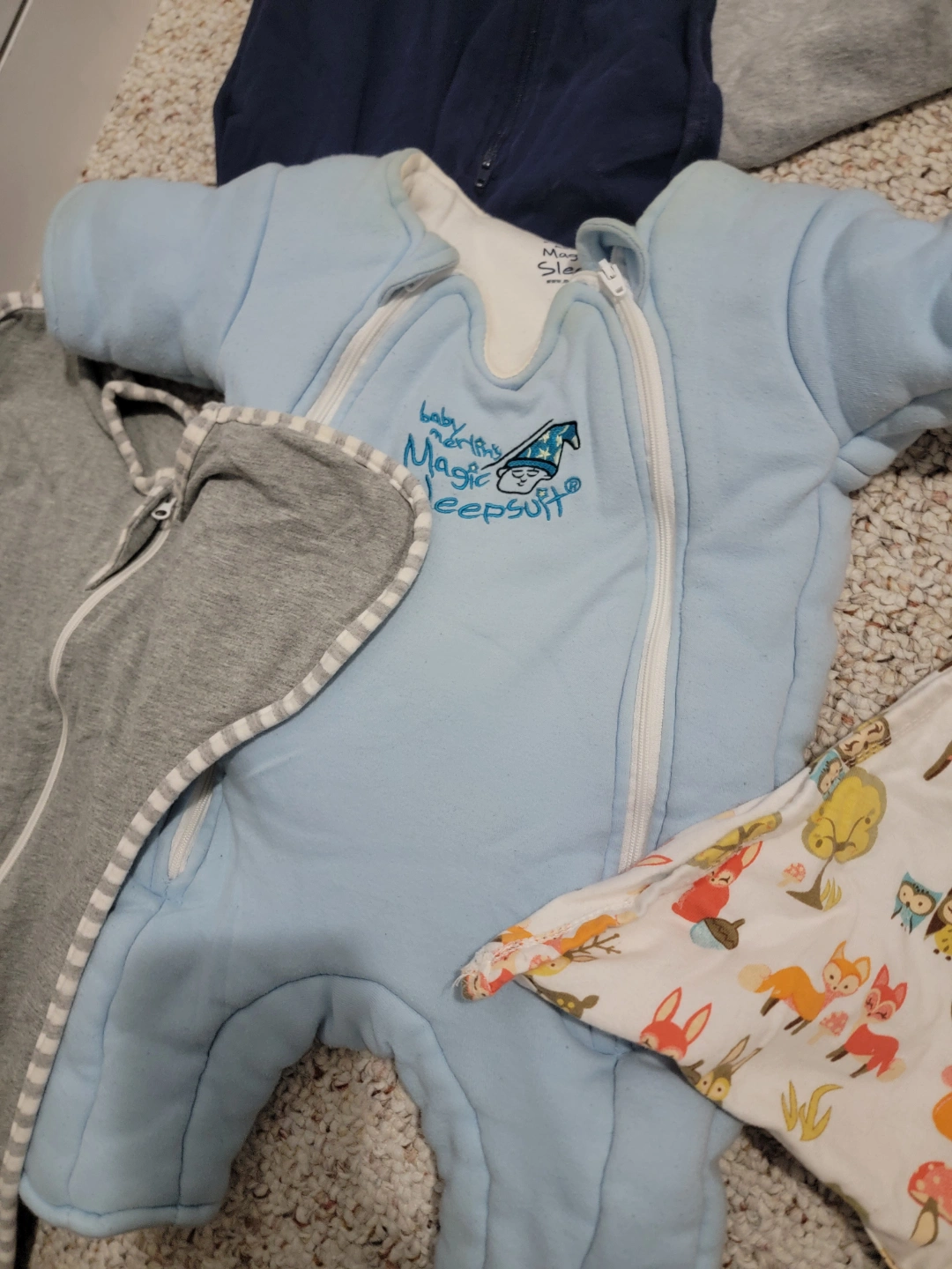 Selling all our lil guys outgrown sleep sacks / swaddles . Lightly used for a couple months . Magic Merlin sleep suit size small 3-6 months -$15 . Very slight discoloration around the neckline area . No rips or tears . Nested Bean Zen one gently weighted swaddles size small 3-6 months . -$15 each . No visible stains rips or tears . These can be used as sleep sacks OR swaddles .great for transitioning . Halo sleep sack / swaddle . Size small 3-6 months . $-15 . No visible stains rips or tears. Can be used as a sleep sack OR swaddle . Good for transitioning . Grey Arms up swaddle ( off brand from Amazon , same as the love to dream ) . $10 . No stains rips or tears . Size small for 3-6 months . Please see my other ads for more baby stuff ! Pickup by Steeles and Dufferin