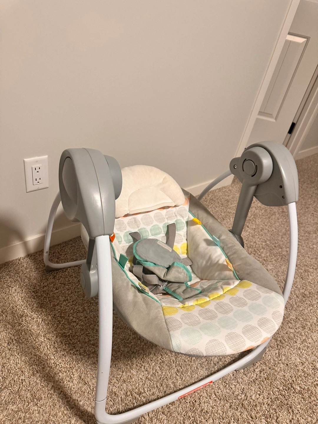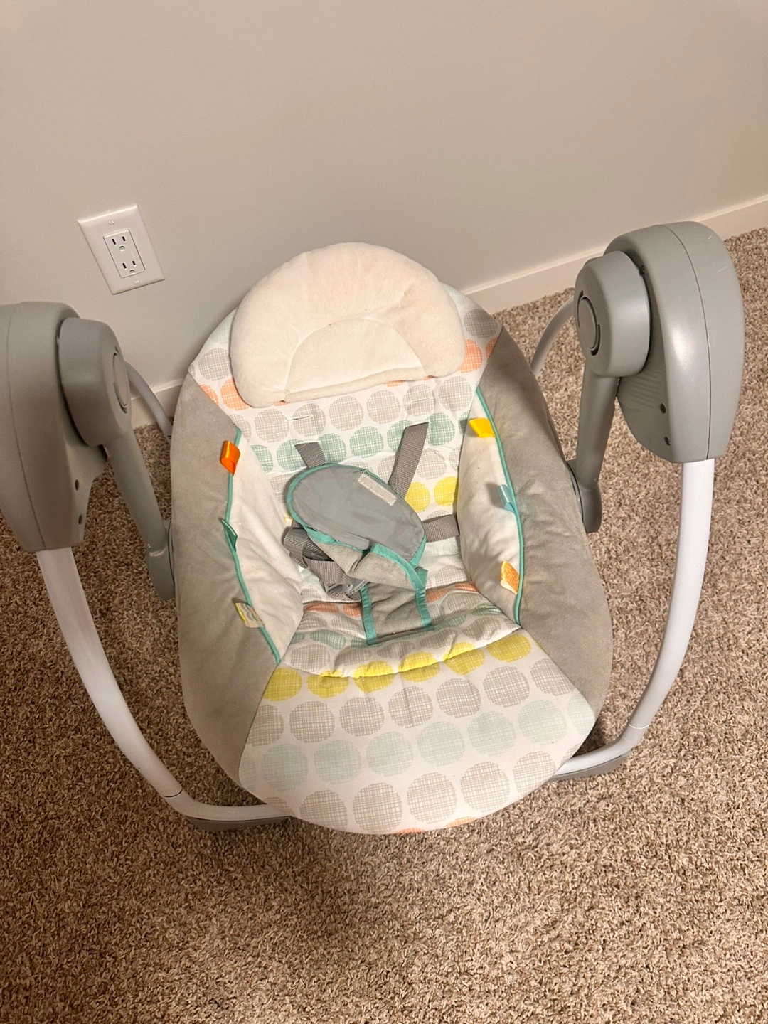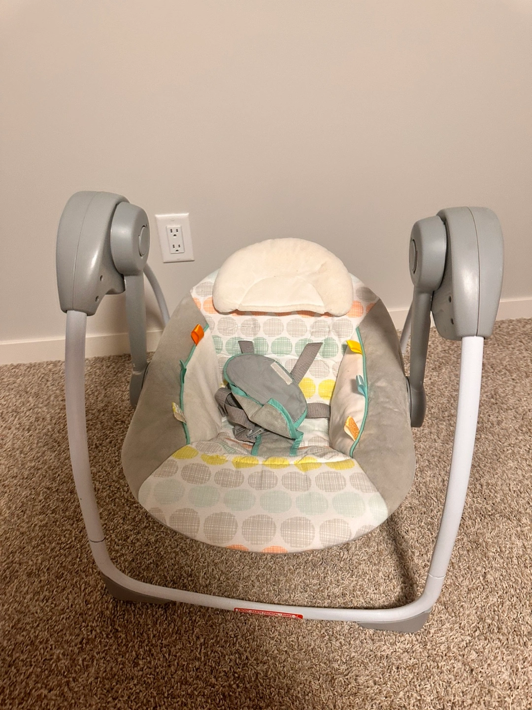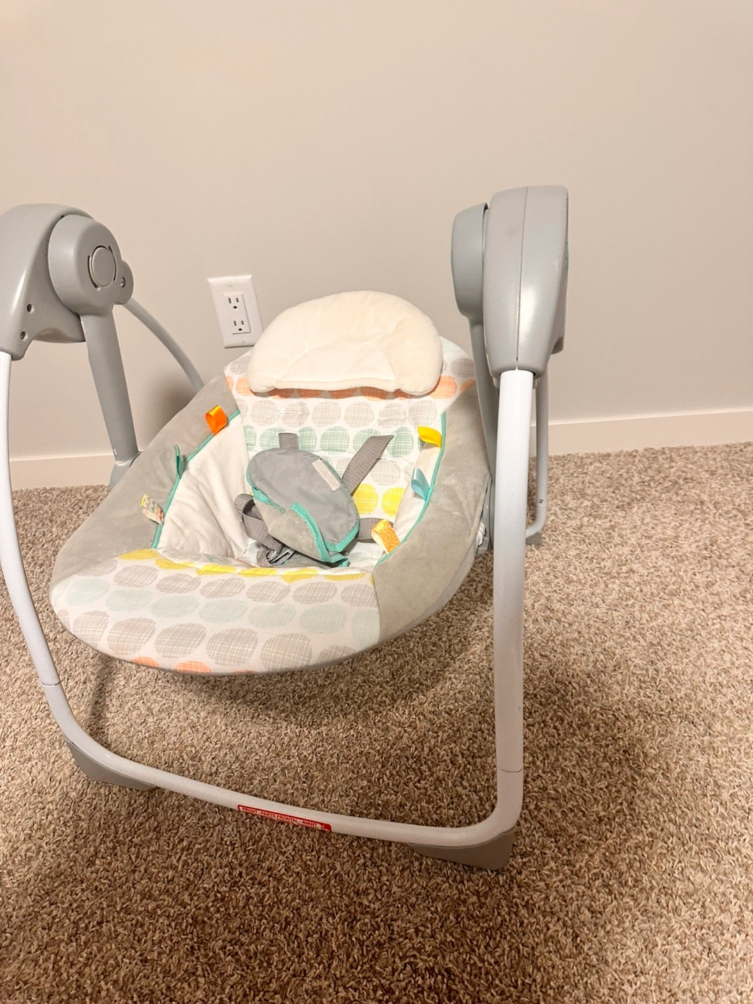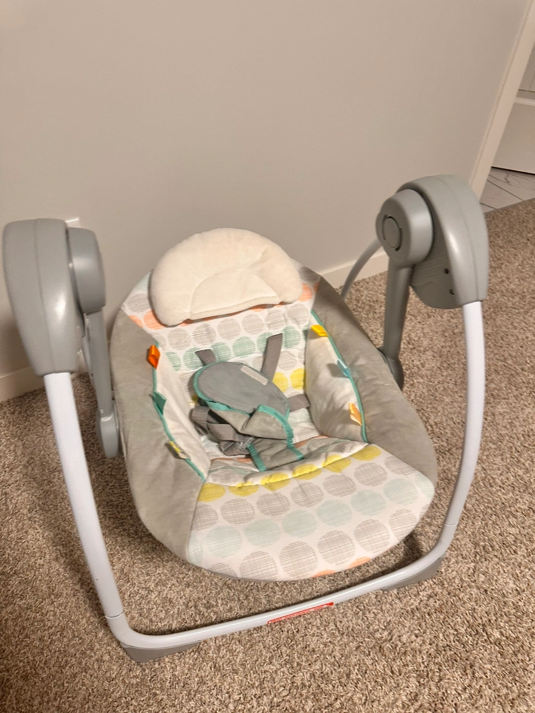 Gently used baby swing. Perfect for soothing your little one with its gentle motion and comfy seat Wiggly a bit