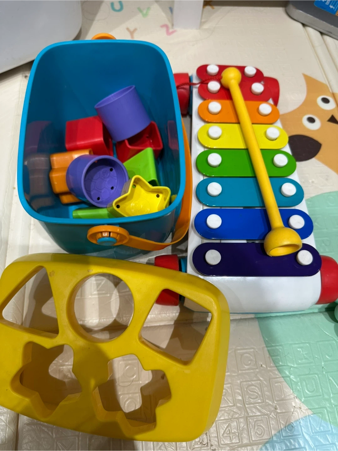 Selling a bundle of baby toys! Includes a shape sorter, a xylophone with a mallet. Great for early learning and development 6-18 months