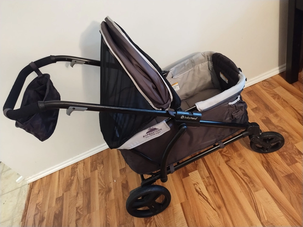 Baby Trend Expedition 2-in-1 Stroller Wagon! It's in great condition and ready for new adventures. This versatile stroller wagon is perfect for families on the go. It combines the convenience of a stroller with the fun of a wagon, making outings with your little ones a breeze