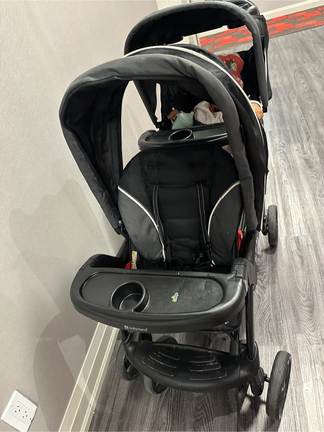 Selling a Baby Trend Sit N Stand double stroller! It's in good condition and ready for a new family. It’s perfect for siblings close in age or twins. It's easy to maneuver and offers multiple seating options for your little ones