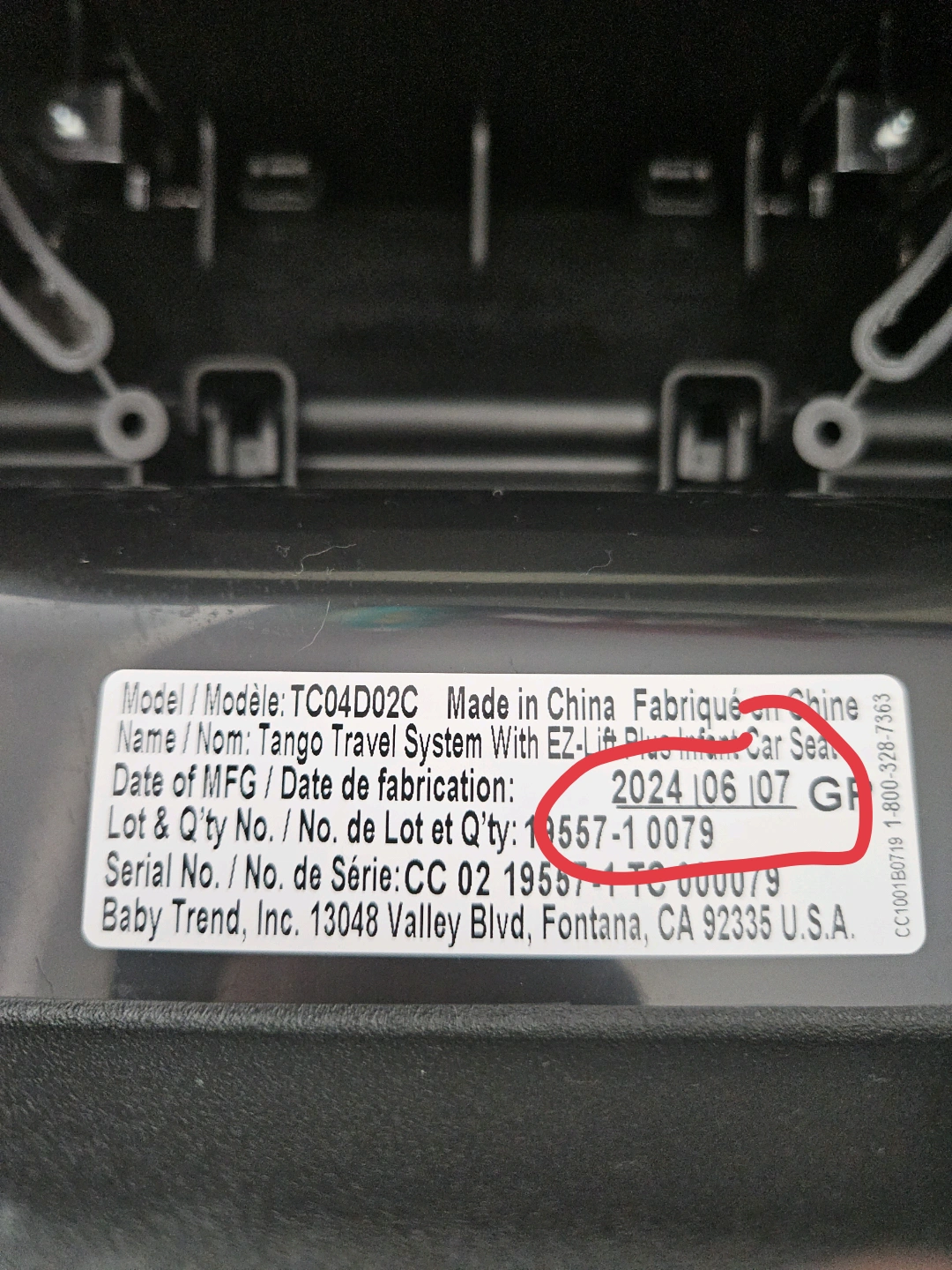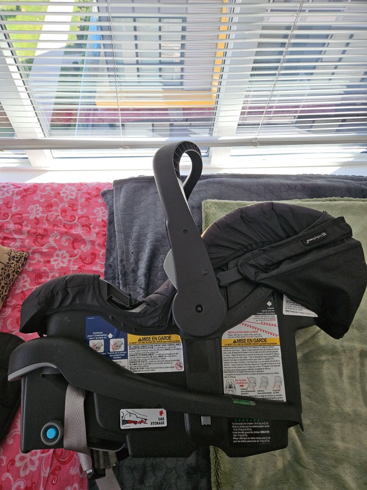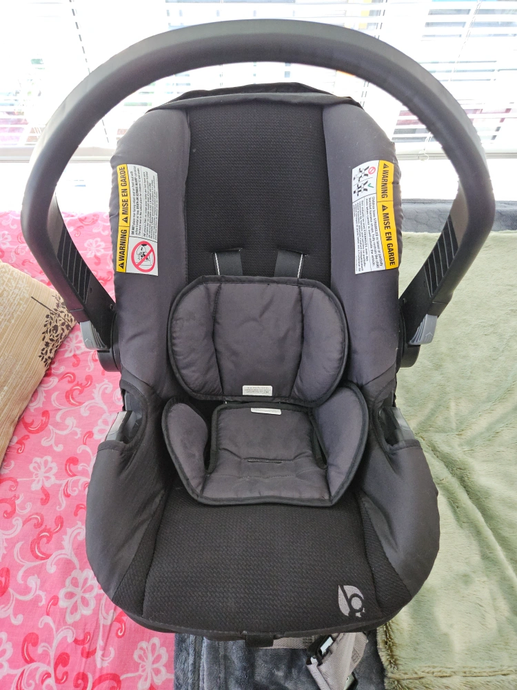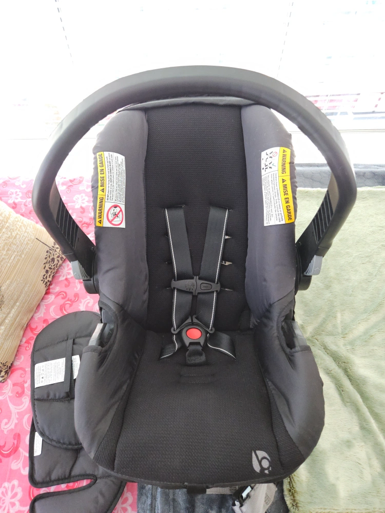 Selling a Baby Trend Tango Travel System infant car seat, used for under 3 months, in like-new and fully clean condition. This car seat is a fantastic option for parents looking for quality and safety without the $200+tax new price tag – yours for just $70 OBO. No accidents, no wear and tear, just ready for its next baby! Comes from a clean, smoke-free environment. Please refer to the last picture for the manufacturer date. Pick up in Surrey near Scott Rd Station. Price is negotiable!