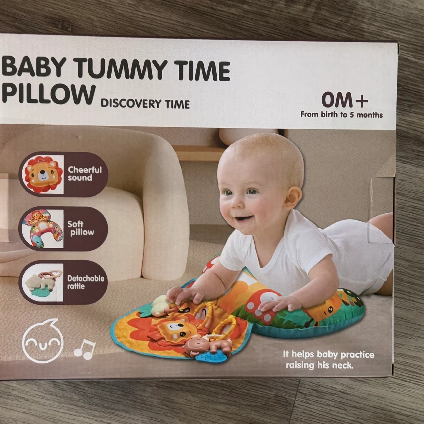 This Baby Tummy Time Pillow is perfect for little ones aged 0-5 months! It's designed to help your baby practice raising their neck during tummy time. The pillow features a cheerful sound, a soft pillow, and a detachable rattle to keep your baby entertained and engaged during playtime