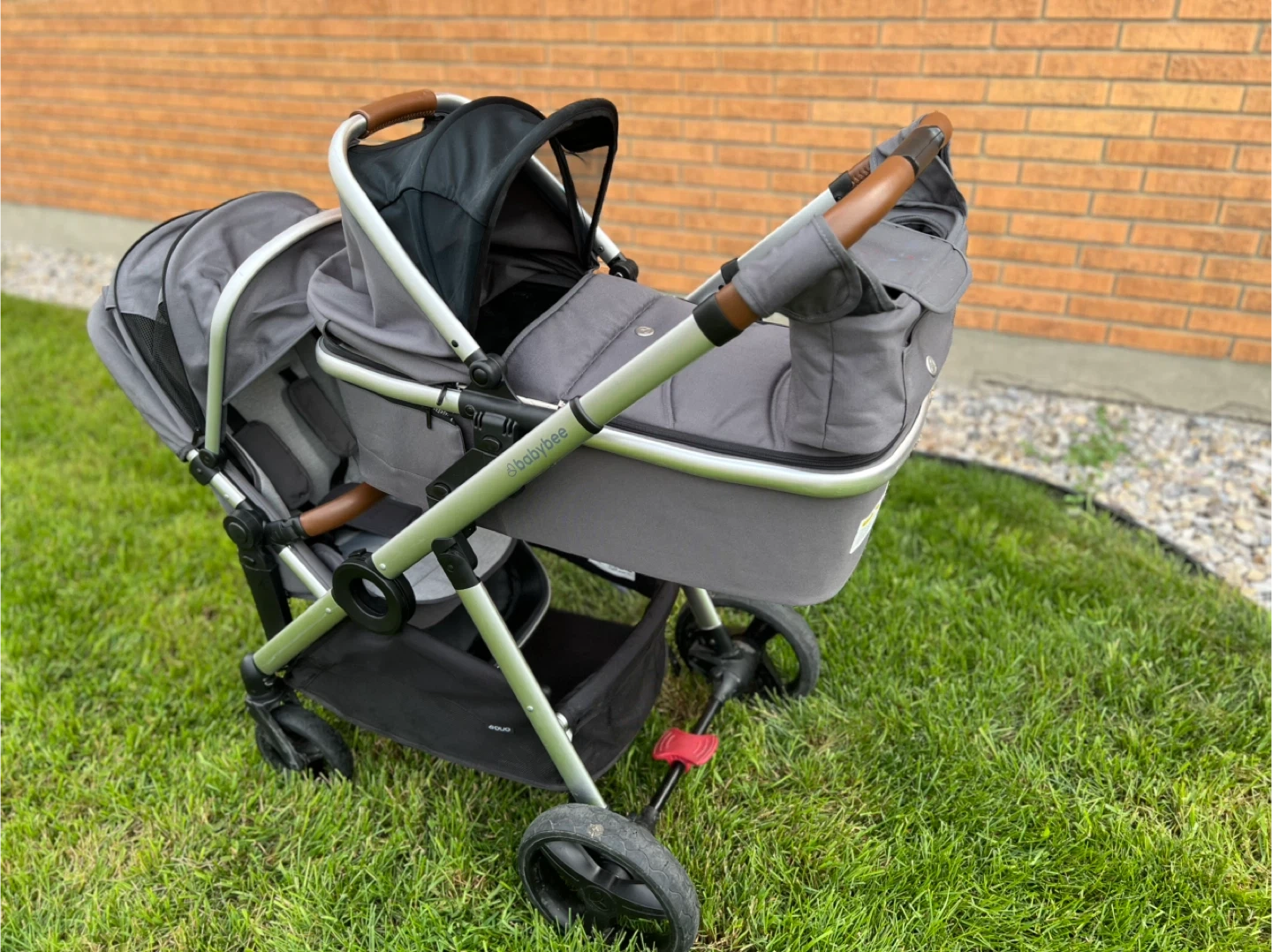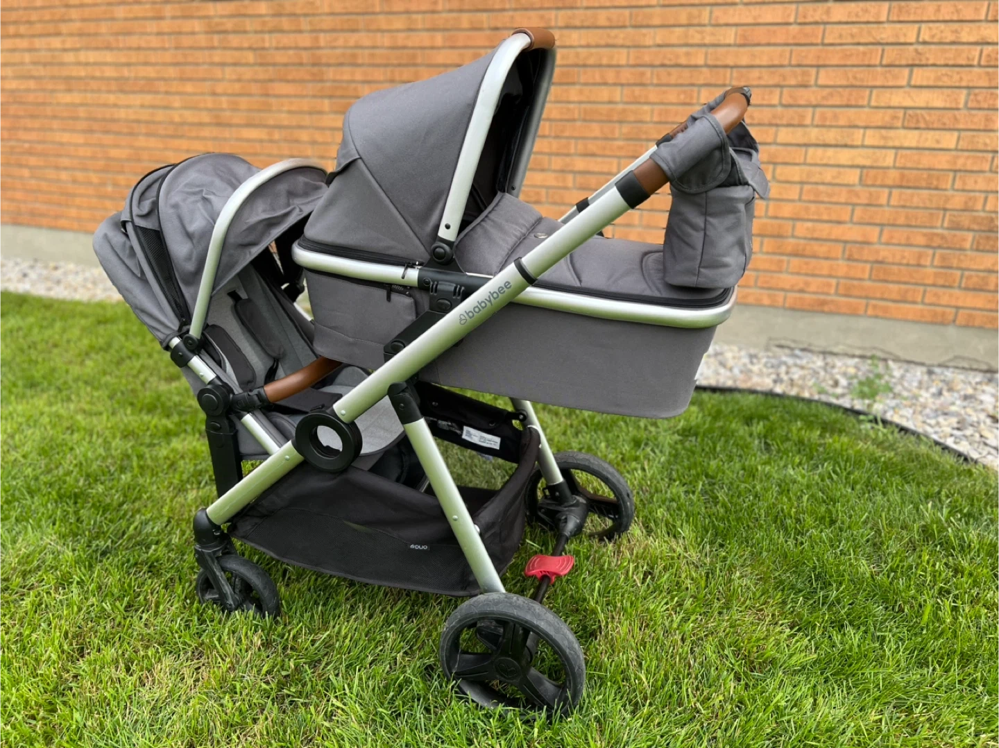 Selling a Babybee Duo double stroller in grey. It includes many great features, accessories and users manual. It's in excellent lightly used condition and ready for a new family. Perfect for one child at different stages or siblings close in age!