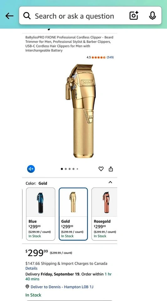 Pro-level cordless clipper for barbers, stylists, and home grooming. Gold and Silver available. Brand new in box with all parts included — priced at 50% off the regular retail. Highlights • N1 brushless motor with dual ball bearings for smooth, efficient power • Interchangeable lithium battery with quick-release; up to 2.5 hours runtime • Black graphite ultra-thin MIM blade (FX8022B) for precision cutting • Built-in oil reservoir keeps the blade lubricated to run cooler with less friction • USB-C cordless design — pro performance for shop or home use What’s Included • BaBylissPRO FXONE cordless clipper (Gold or Silver) • Interchangeable lithium battery • FX8022B blade (installed) • Charging cable • User guide Price • MSRP: $299 • Sale: $150 • Condition: Brand new in box Pickup: Courtice BaBylissPRO FXONE, GOLDFX, cordless clipper, barber clipper, interchangeable battery, USB-C, FX8022B blade, professional trimmer, men’s grooming