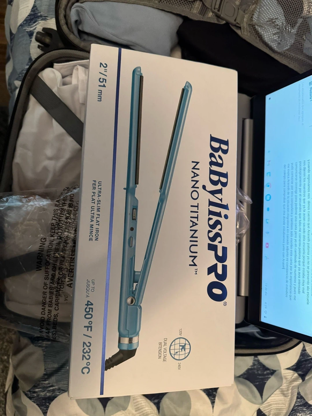Selling a BabylissPRO Nano Titanium 2" flat iron. It's in great condition and ready to use! This flat iron features dual voltage extension and heats up to 450°F / 232°C. Comes with the original box