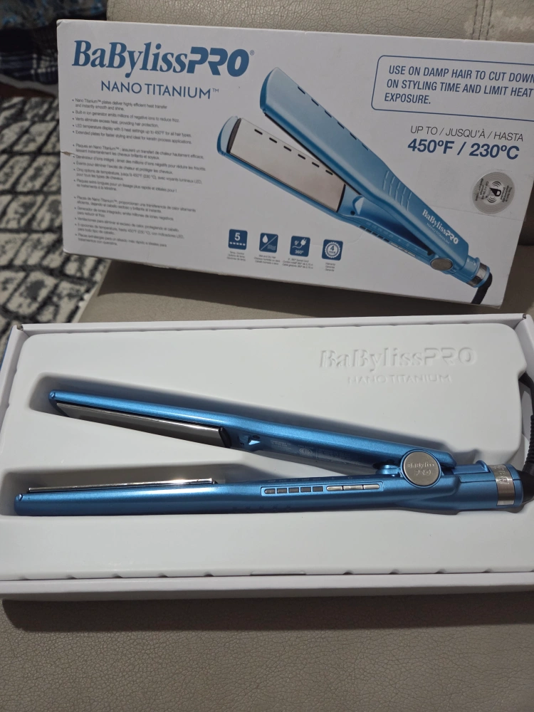 I'm selling a brand new BaBylissPRO Nano Titanium straightening iron! It features Nano Titanium plates for smooth, efficient heat transfer. It heats up to 450°F / 230°C. The box is included!