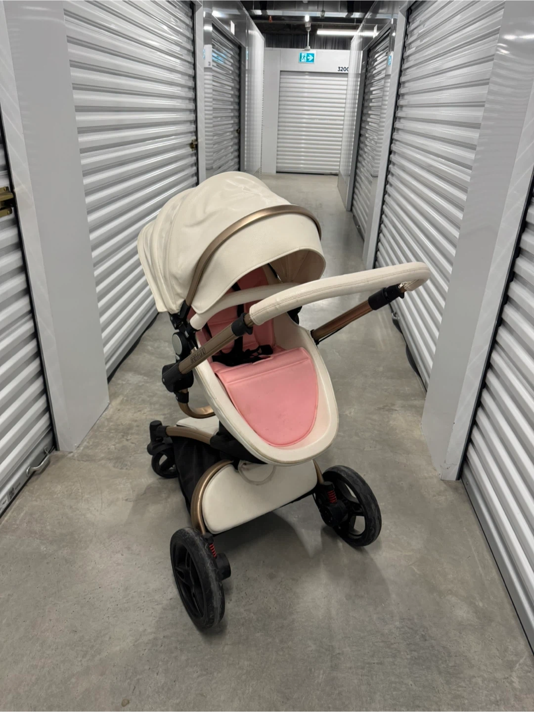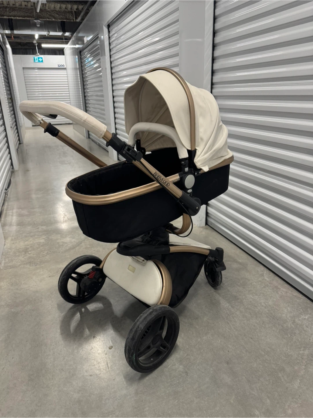 Selling a Babymono stroller that's in good condition! It features a stylish design with a cream and black colour scheme and bronze accents. Perfect for strolling around town with your little one!