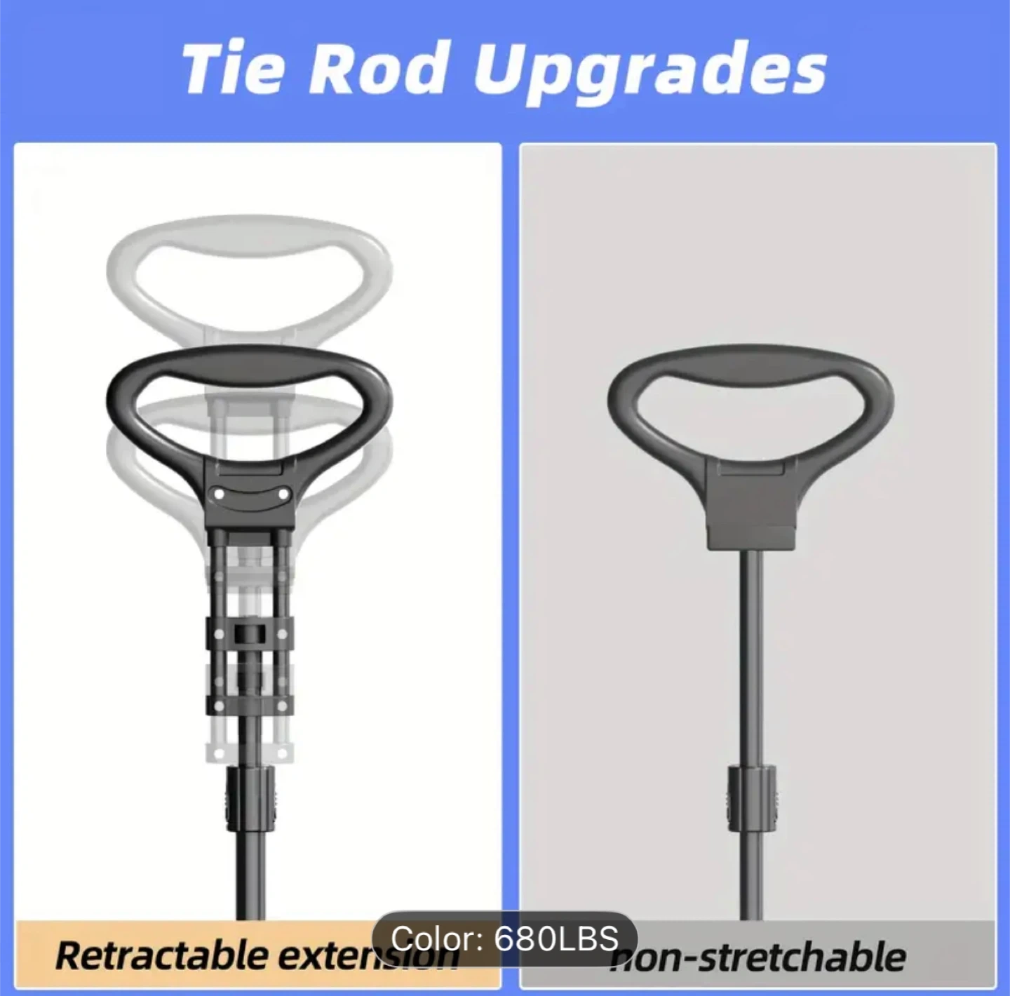 I'm selling a BabyNee tie rod upgrade with a retractable extension! It's designed for all-terrain use with features such as: -Low noise -Sturdy build -Anti-skid design -360° rotation The box indicates measurements of 46x34x13.5 cm