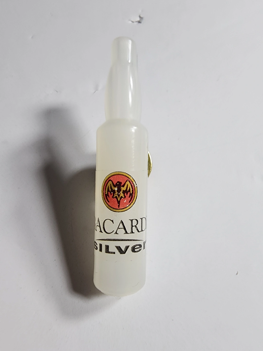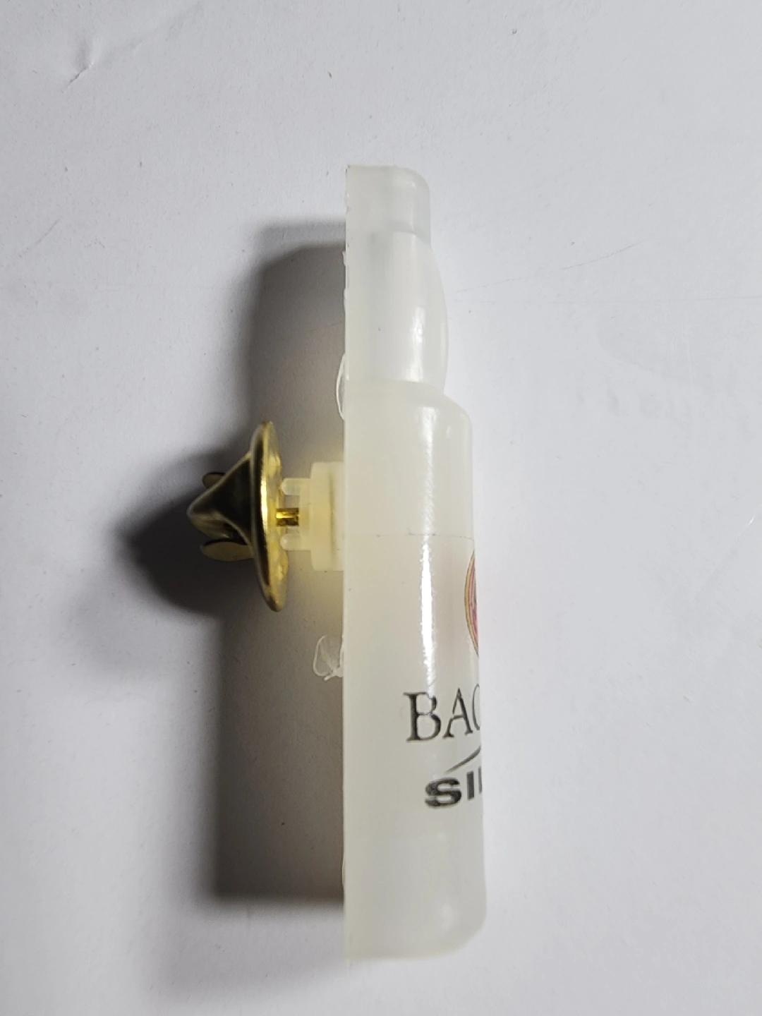 Here's a Bacardi Silver bottle pin! It's in great shape and features the iconic Bacardi logo. Perfect for collectors or anyone who loves rum
