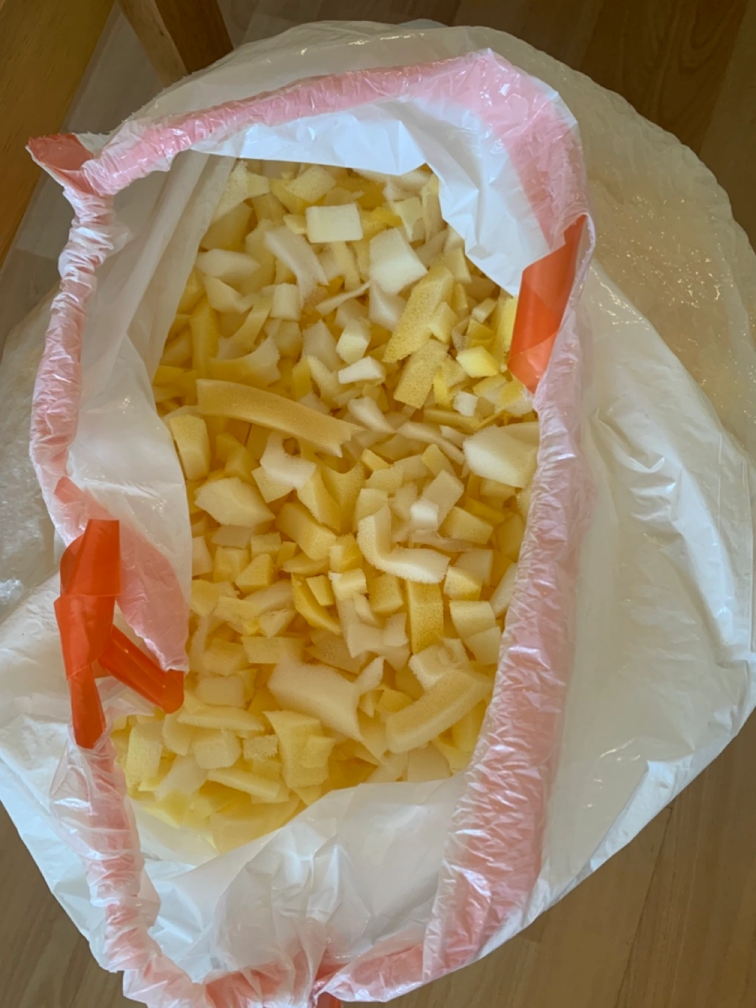 I have a bag of foam pieces available. They could be useful for various DIY projects or crafts! The bag is quite full, so there's plenty of foam to work with. V5T 0J5