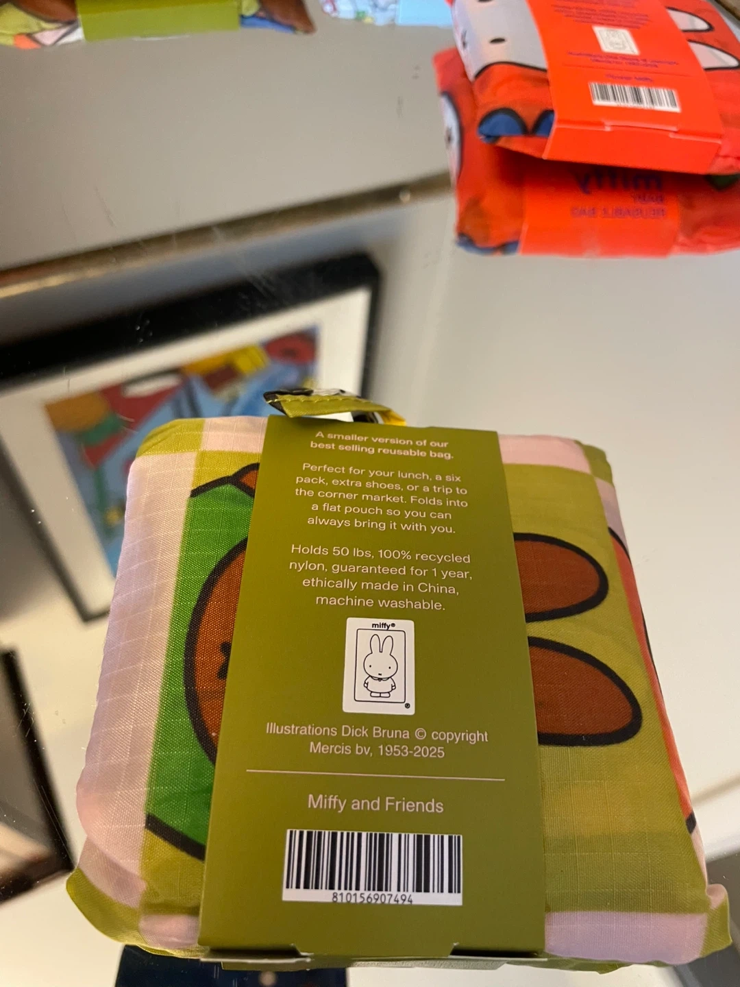 This Baggu Miffy baby reusable bag is brand new and ready for a new home! Perfect for your lunch, a snack pack, extra shoes, or a trip to the corner market. It folds into a flat pouch so you can always bring it with you. It holds 50 lbs and is made of 100% recycled nylon. Machine washable too! . Located in Osborne Village with easy access to driveway for pickup. Selling a brand new Miffy Baggu Baggu baby sized bag with tags . . a smaller version of the original reusable shopping bag perfect for lunch, out in the boat, a trip to the corner store, or a perfect shoe bag folds into its own flat 4" x 4" pouch measures 18" x 10" x 4 carries up to 50 lbs comfortably recycled ripstop nylon machine washable . Etransfer preferred to guarantee hold . Cash transactions are FCFS. Short holds only . Please see my other listings for more Baggu and Miffy thanks