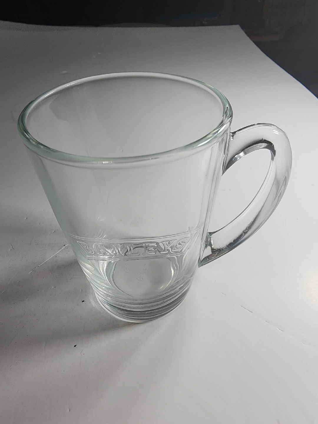 Selling a clear glass Baileys mug! It's in great condition and perfect for enjoying your favourite Baileys beverage or any other drink you like