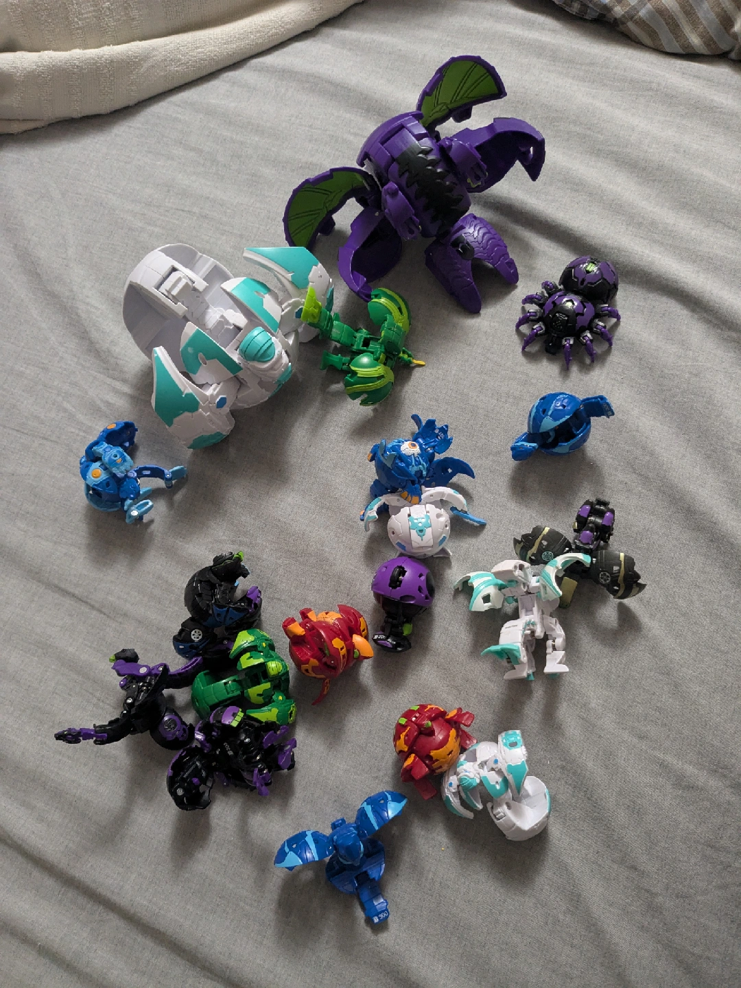 Selling 19 Bakugan toys! Two of these are large and the rest are small. These are in great condition and ready for a new home. Lots of different colours and styles to choose from. Perfect for any Bakugan fan!