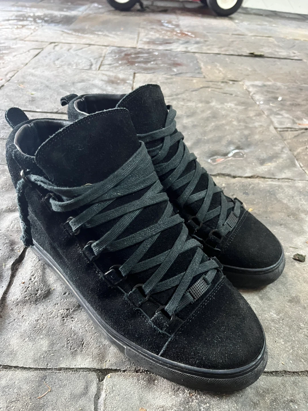 Selling a pair of Balenciaga high-top sneakers in black. They are a size 41. Please take a look at the photos to see the condition!