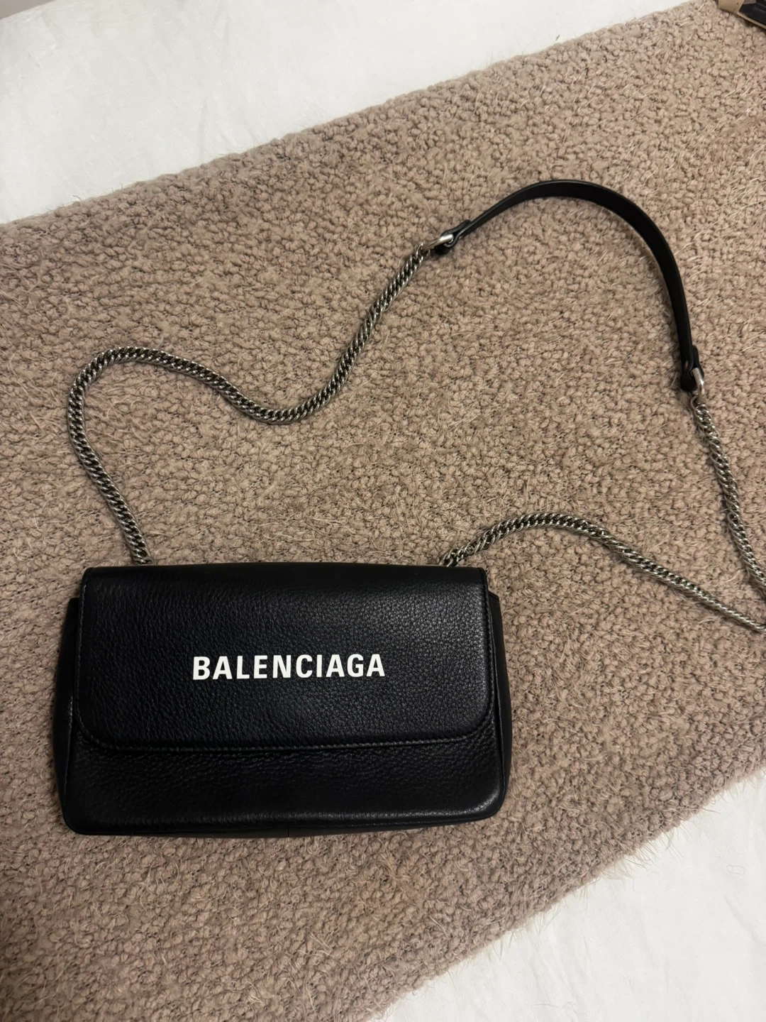 Selling a Balenciaga chain wallet purse in black leather! It's in great condition and perfect for carrying your essentials. Features a chain strap and multiple compartments inside