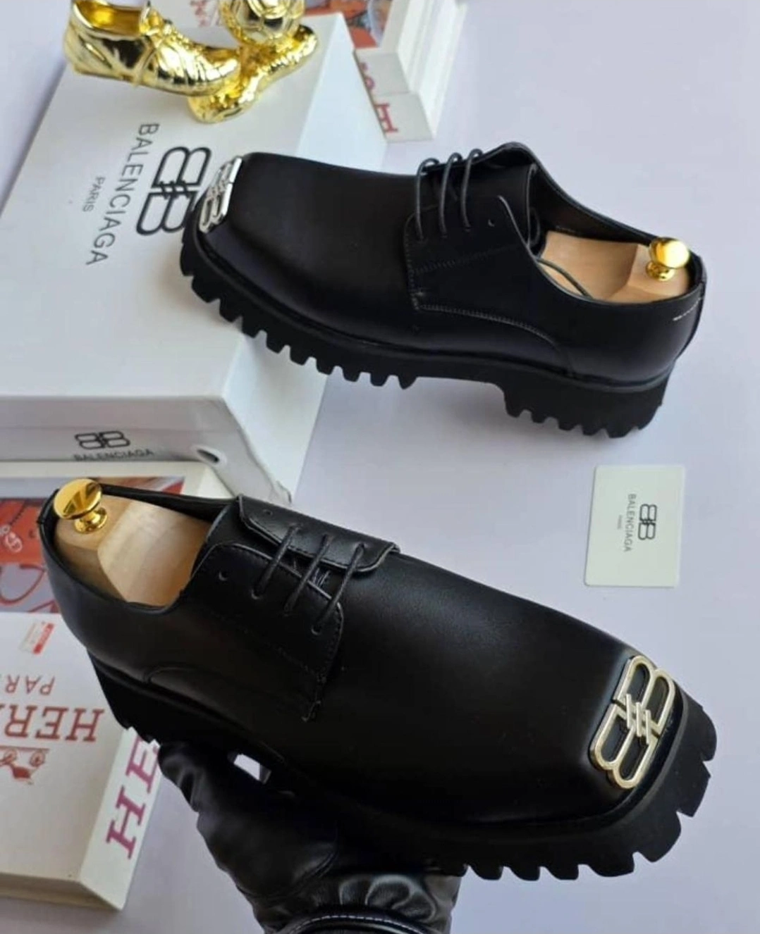 Selling a pair of Balenciaga derby shoes in black leather. These shoes feature a distinctive design and are in great condition. Perfect for adding a touch of luxury to your wardrobe!