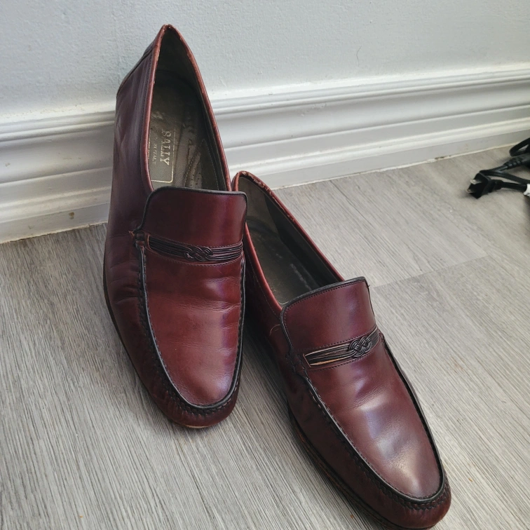 Selling a pair of Bally loafers in burgundy leather. These are a classic style and great for everyday wear!