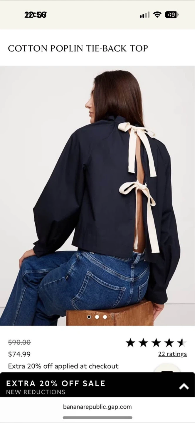Selling a Banana Republic Cotton Poplin Tie-Back Top. Never have been worn, however I washed it once. Originally priced at $90.00.