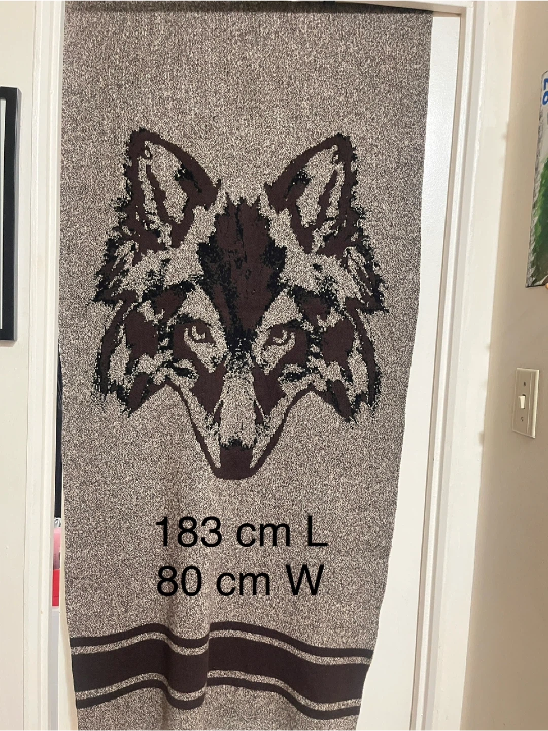 Selling a Banana Republic Heritage Collection scarf! It's in great condition and features a cool wolf design. Material: - 55% Merino extra fine wool - 25% Extra fine wool - 20% Cotton Measurements: - 183 cm (L) - 80 cm (W)