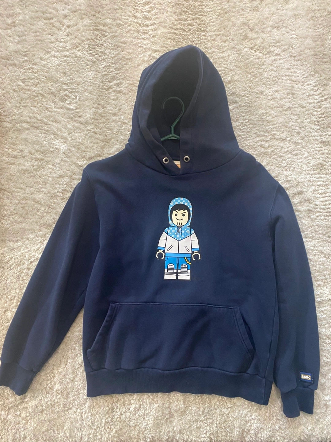 This is a Banc hoodie with a LEGO design on the front and back! The size is S and it's made of 100% cotton. Perfect for LEGO fans!
