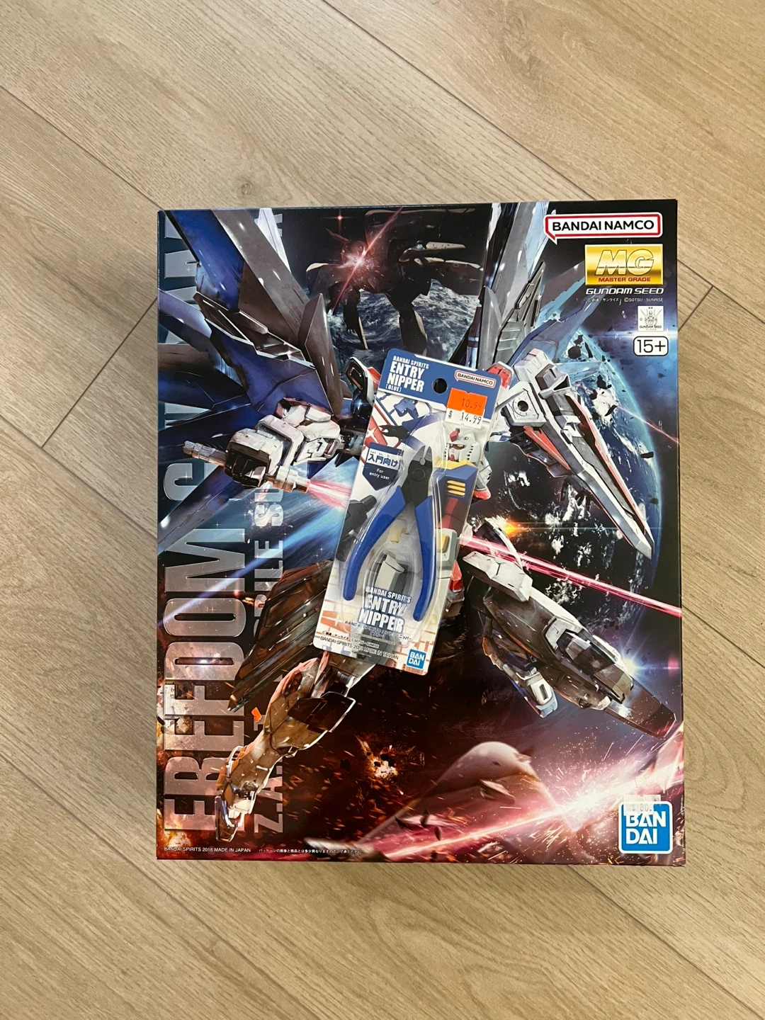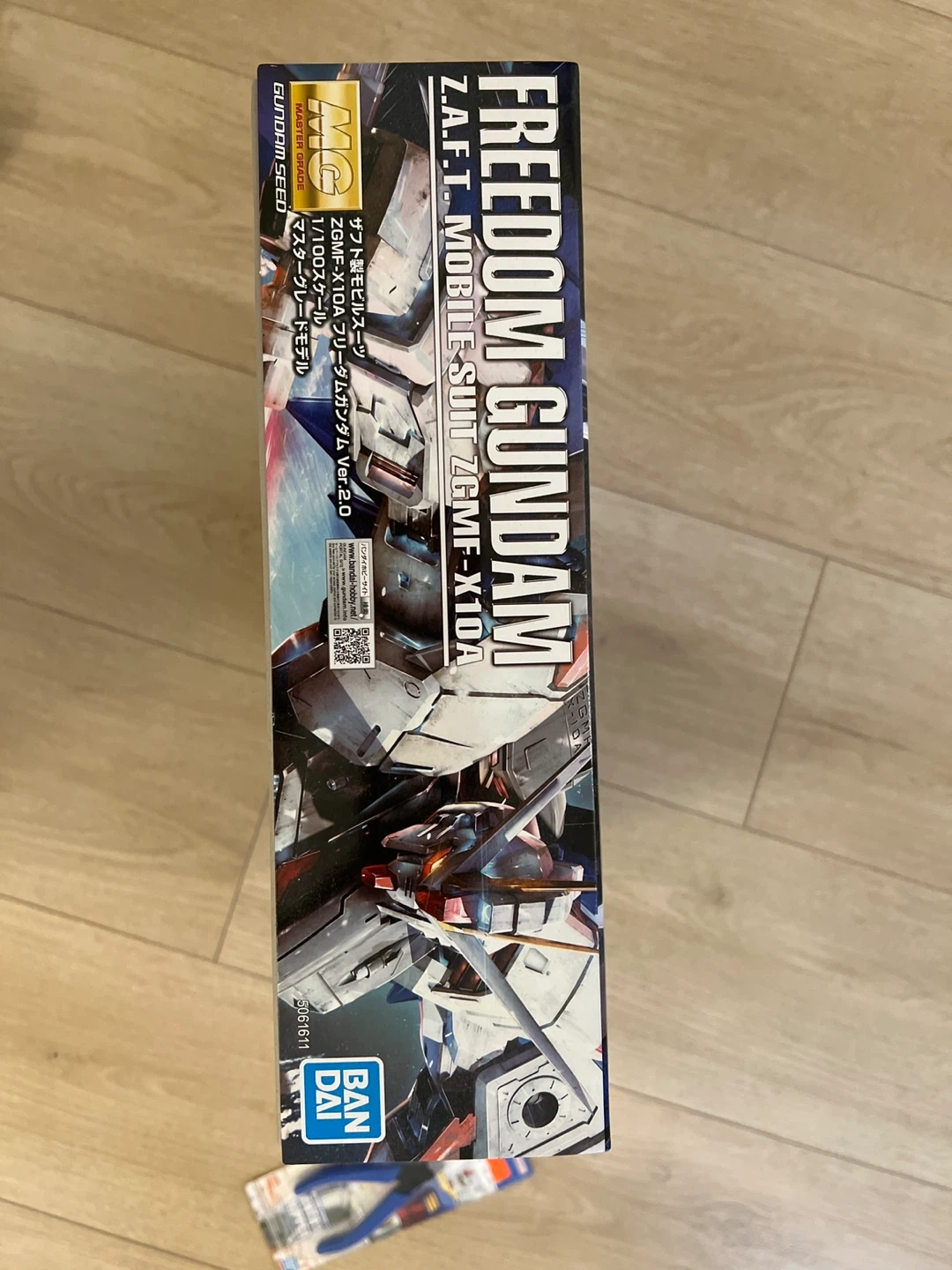 Selling a Bandai Freedom Gundam ZGMF-X10A Ver.2.0 model kit. It's a Master Grade (MG) 1/100 scale model from the Gundam Seed series. Includes an entry nipper for assembly!