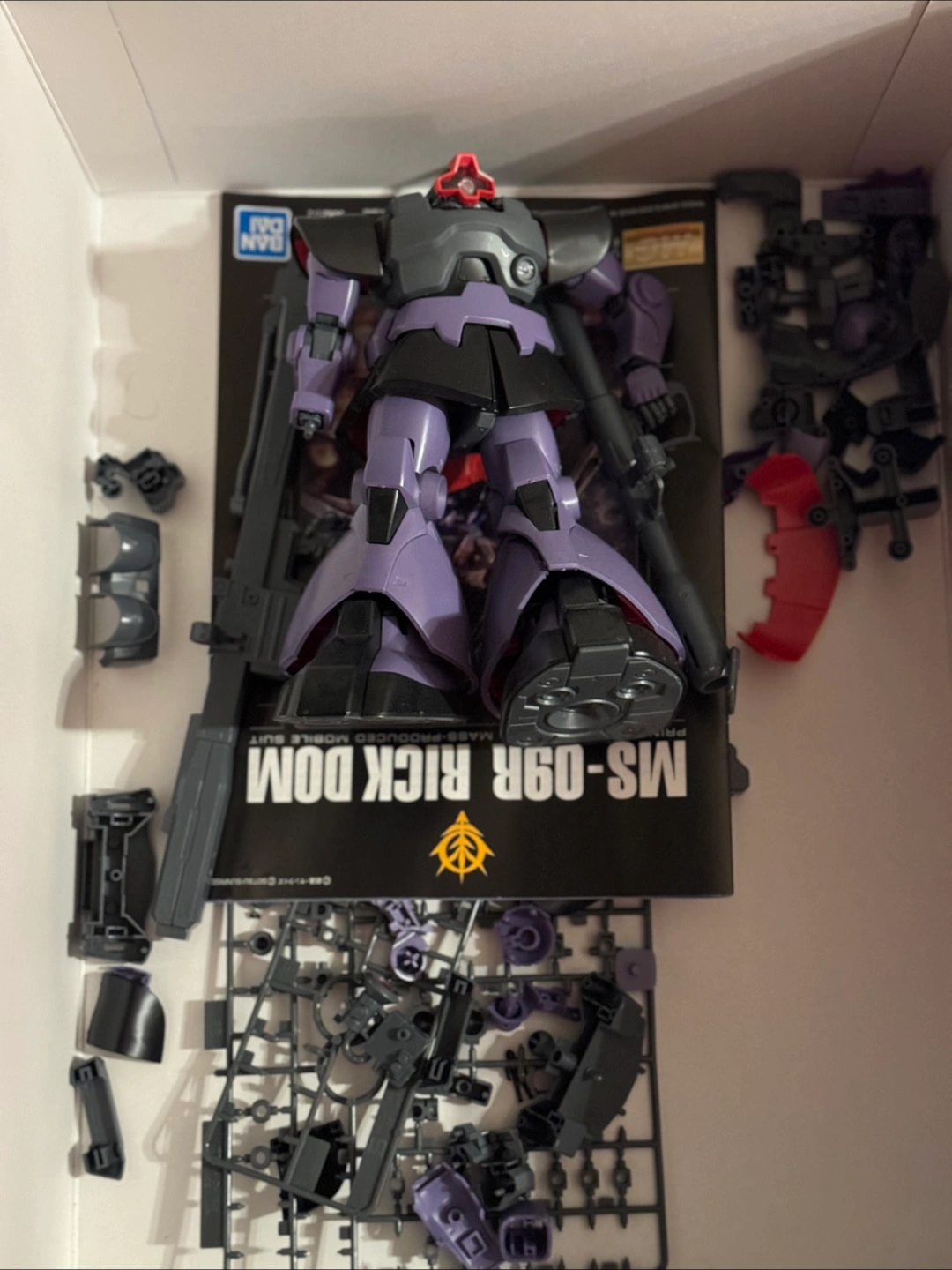 Selling a Bandai MG 1/100 MS-09R Rick Dom model kit. It's in great condition and comes with all the original parts and box. Perfect for any Gundam fan!