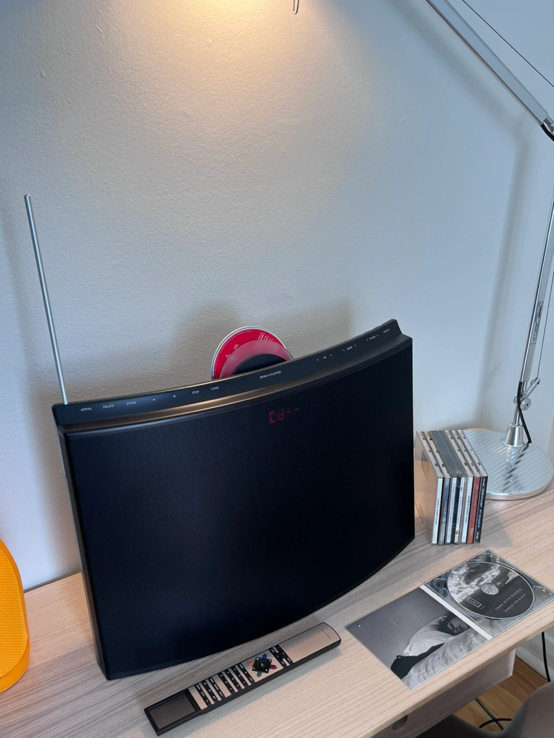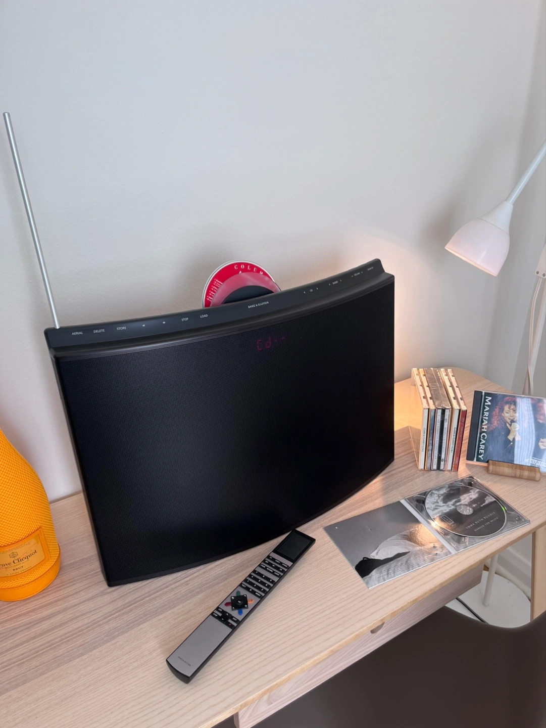 BeoSound 2 2004 Mint condition. Black colour. Can be turned to Bluetooth speaker. Curved black stereo system. Plays CDs and radio. Includes remote. Features an aerial. You crank up the volume and BeoSound 2 will keep the integrity of the sound all the way. Great for indoor and outdoor listening. Boats as well. It can be wall mounted with additional bracket. Pickup midtown Toronto.
