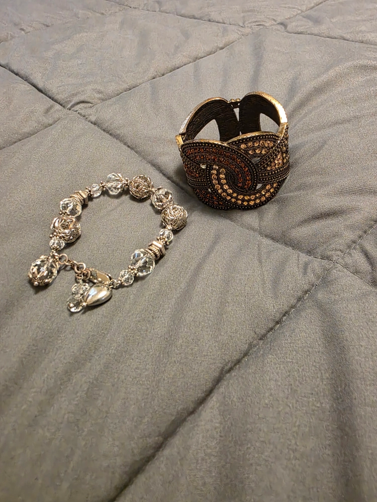 Selling a bangle bracelet and another unique design bracelet! Both in great condition. Box to store the bangle bracelet.
