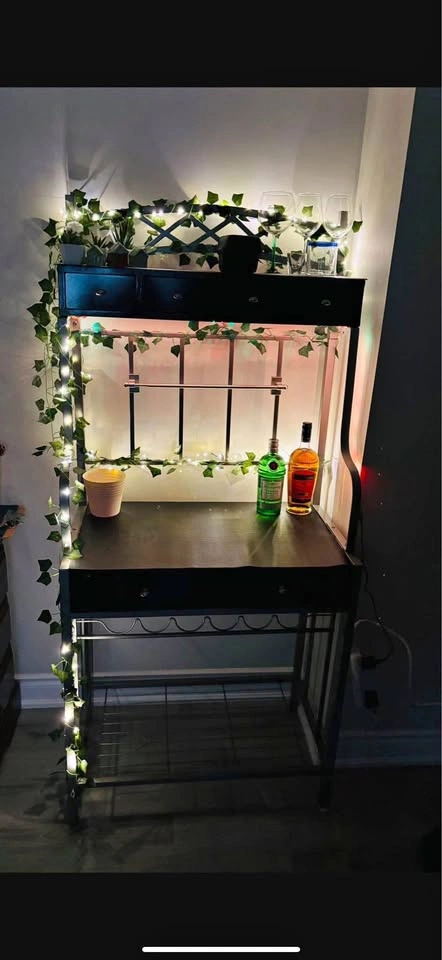 It's a moving out sale. I decorated it by myself. Looking for bar corner, here it is. You can use it as your makeup table or bar table or whatever way you want to use it. It comes as it is shown in the picture.