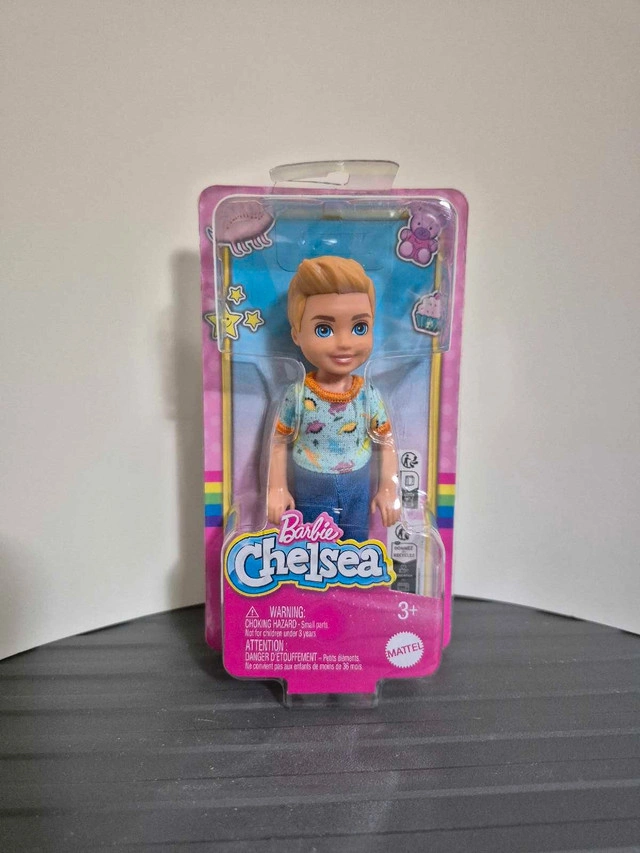 I am offering a brand new Mattel Barbie Chelsea doll, still in its original packaging. This adorable doll is ready to find a new home and bring joy to a Barbie collection or be a fun toy for a child. Here are some details: * Brand: Mattel * Character: Chelsea * Condition: New, in packaging This Barbie Chelsea doll is priced to sell at $10 CAD. If the ad is up, it's ready to go!