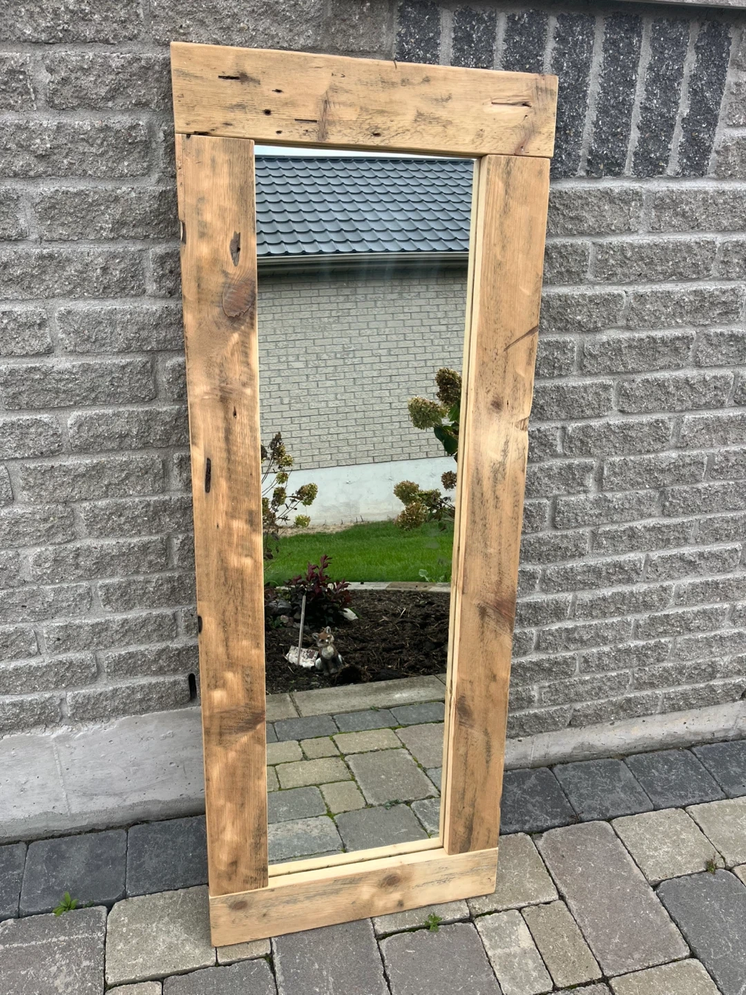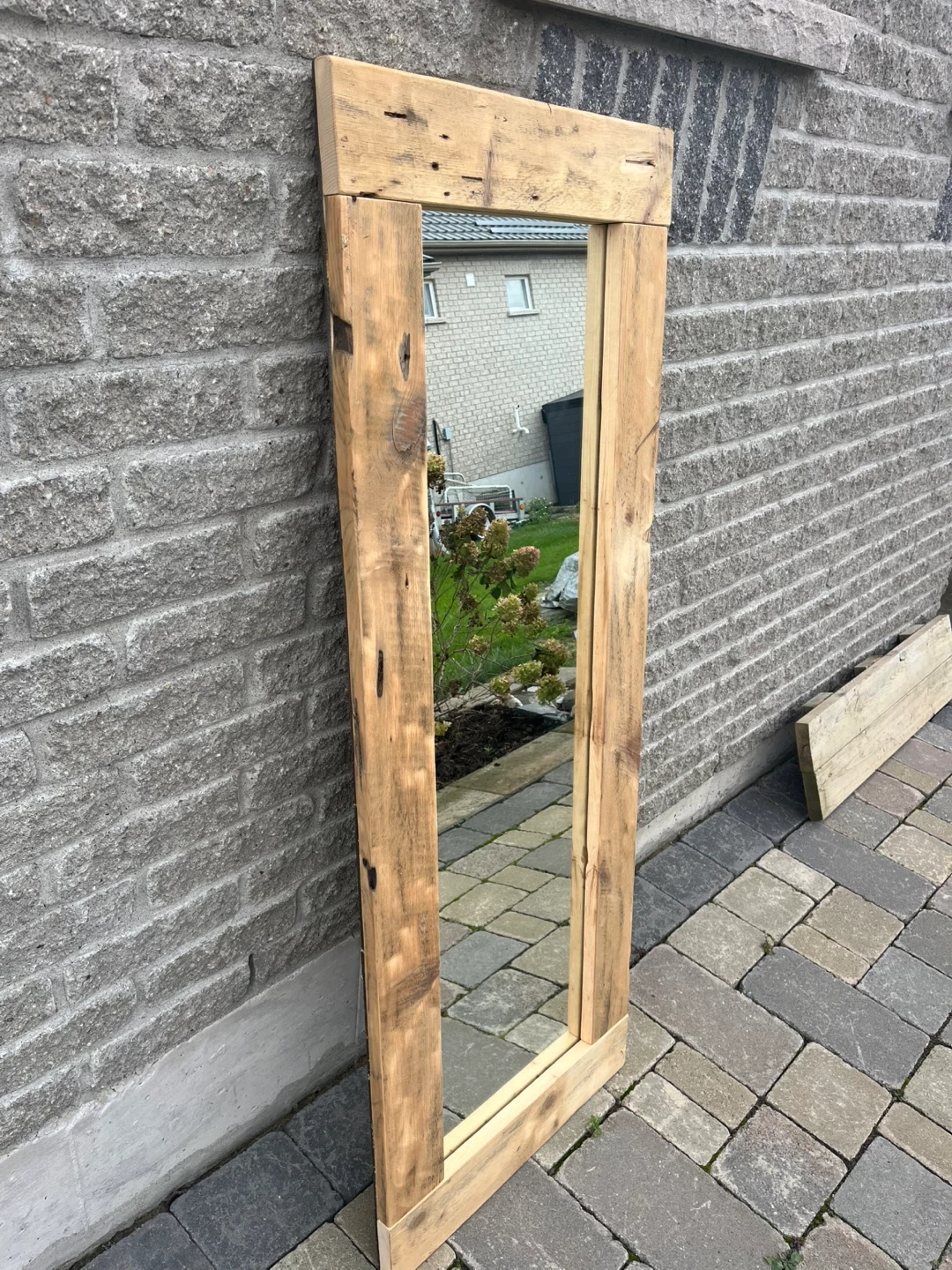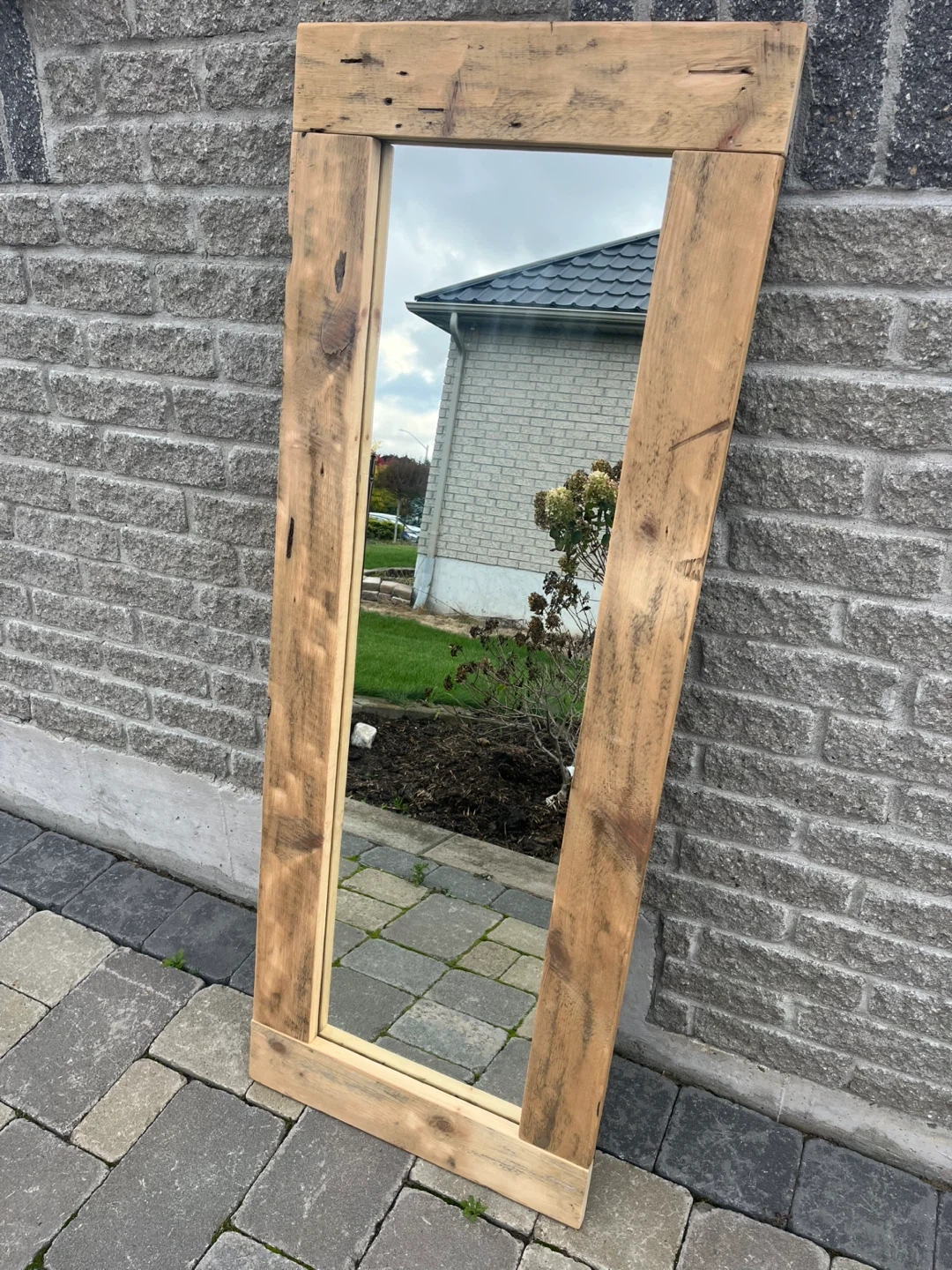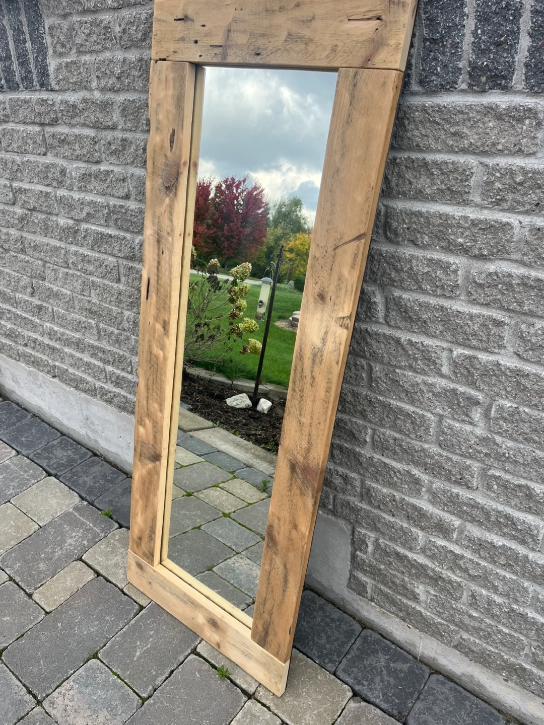 Barn Board Wardrobe Mirror. Custom made from locally sourced Barn Boards. Great for home or cottage. Can be hung vertically or horizontal. Or use as a wall leaner in a bedroom or bathroom. Size is 24” wide by 62” tall.