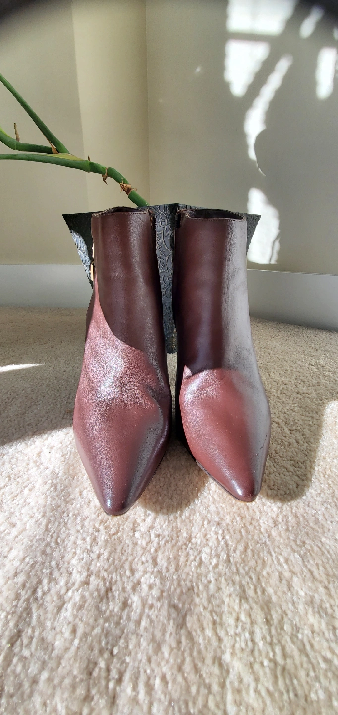 Selling a pair of Barney New York heeled booties in a beautiful brown leather. They are a size 8. Stylish and in good condition!