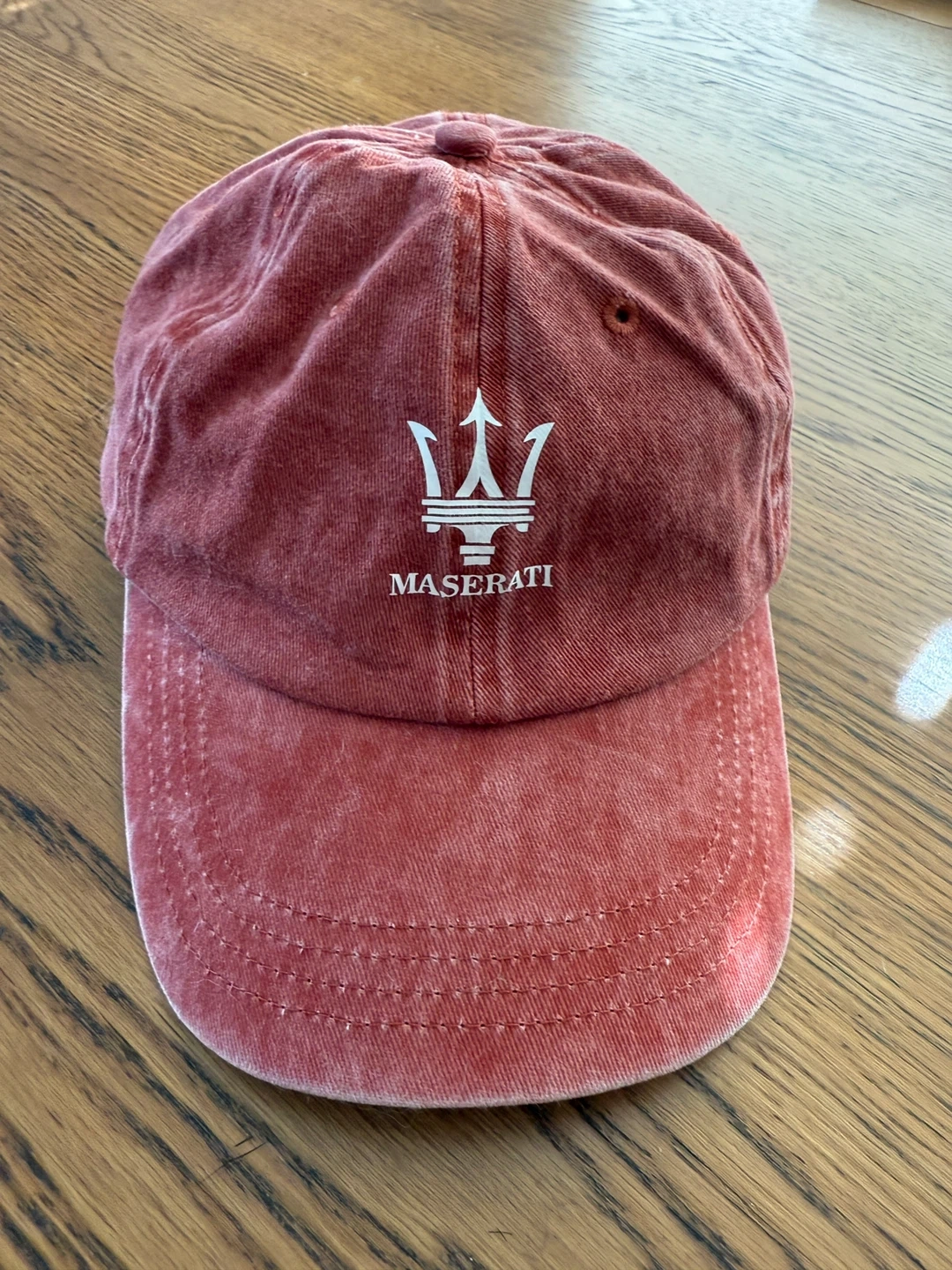 Selling a Maserati baseball cap in a unique salmon colour! It's in great condition and features the Maserati logo. Perfect for any car enthusiast or just to add a bit of sporty style to your outfit