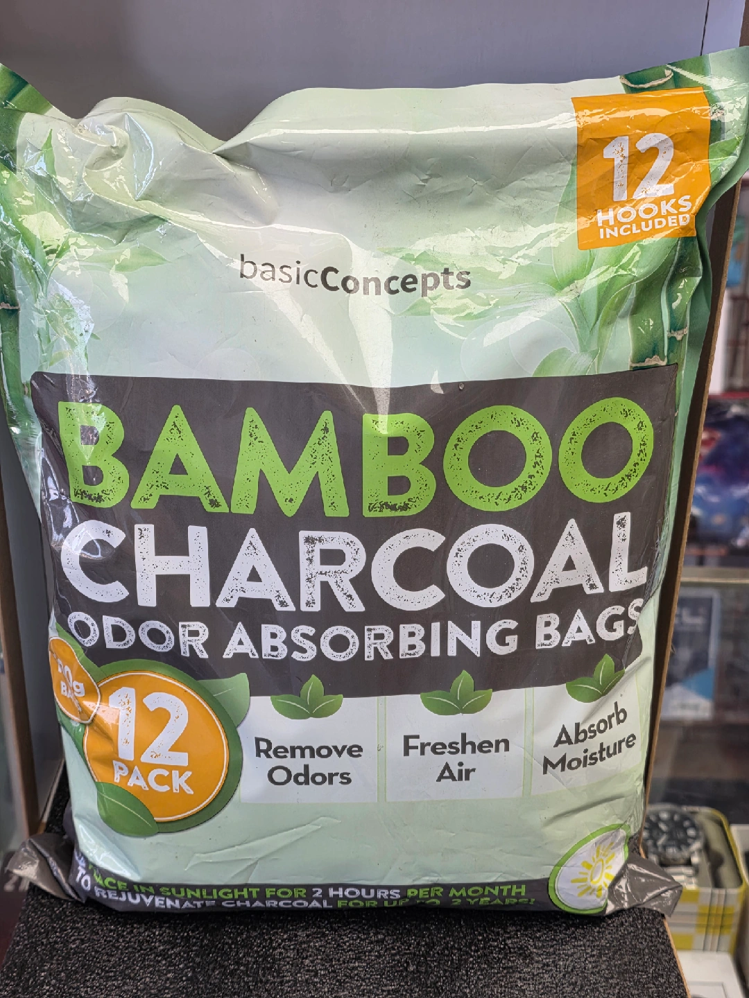 Keep your home, car, or gym bag smelling fresh with these basicConcepts Bamboo Charcoal Odor Absorbing Bags! This 12-pack is designed to remove odors, freshen the air, and absorb moisture. Each bag includes a hook for easy placement in closets, bathrooms, kitchens, or even your refrigerator