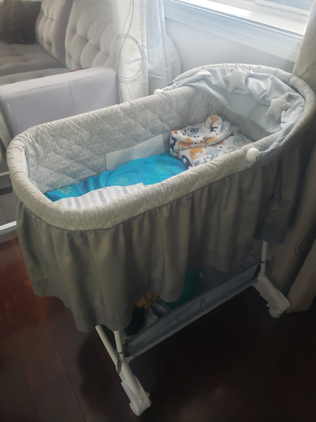 Selling a baby bassinet in good condition. It's perfect for newborns and infants. The bassinet is lightweight and easy to move around the house. It provides a safe and comfortable sleeping space for your little one